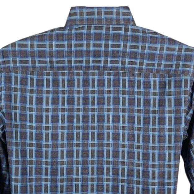 VenmoBugatchi Blue and Dark Gray Button Down Shirt in a size large. We bought it at Nordstrom a few years ago for $70. My husband only wore it a couple of times. Classic fit, 100% cotton. Great quality!