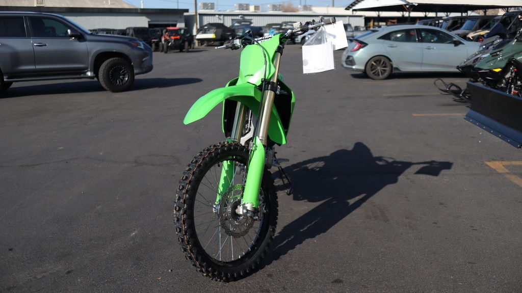 2026 Kawasaki KX™450 THE BIKE THAT BUILDS CHAMPIONS The KX™ legacy represents a long line of champions. The drive to produce more has not slowed down. Our flagship KX™450 motorcycle offers next-level engineering and power to dominate the track. Over the decades, we've learned what it takes to win and stay on top. The KX450 embodies this legacy to the fullest. Features may include: POWER & PERFORMANCE BUILT TO WIN The KX™450 motorcycle engine delivers broad, useable torque and strong, responsive power across the rev range. From the starting gate to the finish line, this race-ready machine is built to stay ahead of the pack. RACE-READY SUSPENSION LEAVE THEM IN THE DUST Take the lead with proven race-winning performance. The highly adjustable Showa suspension package delivers smooth action, firm damping, and contributes to optimal traction. ADVANCED TECHNOLOGY RIDE WITH CONFIDENCE All KX™450 motorcycle advanced controls are streamlined for rider convenience. Kawasaki TRaction Control (KTRC), Power Mode Selection, and Launch Control Mode are available at the push of a button. These features enable riders to quickly adjust power delivery and traction for riding conditions and preference. The KX450 offers superior features designed to inspire confidence. CHASSIS & ERGONOMICS MADE TO SHAVE LAP TIMES Experience the race-winning advantage of a strong and lightweight chassis, agile handling, and exclusive ERGO-FIT® technology. ADDITIONAL: Lightweight aluminum perimeter frame Straight exhaust port and center exhaust ODI lock-on grips Quick-release side cover offers tool-less air filter access Streamlined ergonomics for easy rider movement Coned disc-spring hydraulic clutch