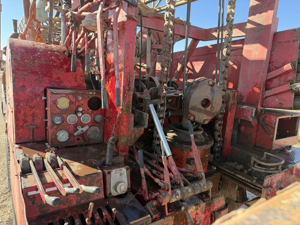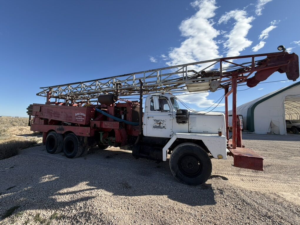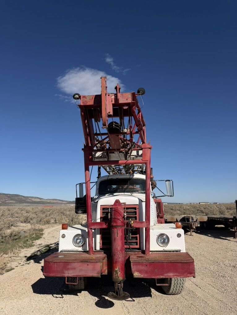 Estimated 1968 Portdrill 10 TG Hydraulic Retractable table Hydraulic Breakout wrench (big bonus for these rigs ) Piston Air compressor ( estimate 500/175) Detroit deck engine Comes with 200+’ of 4-1/2 flush joint drill pipe (newer drill pipe) Has centrifugal 4x3 mud pump that currently needs rebuilt Has water injection pump (runs off hydraulics) Both Runs and drives (haul it on a low boy to destination) Drilled a few water wells recently Needs some TLC but could drill right away Located in cedar city UT Asking 38,000 Call or text Matt to schedule an appointment to go look at it 435-six six eight -8200 Could be used for mineral exploration/ geo loops Or water wells