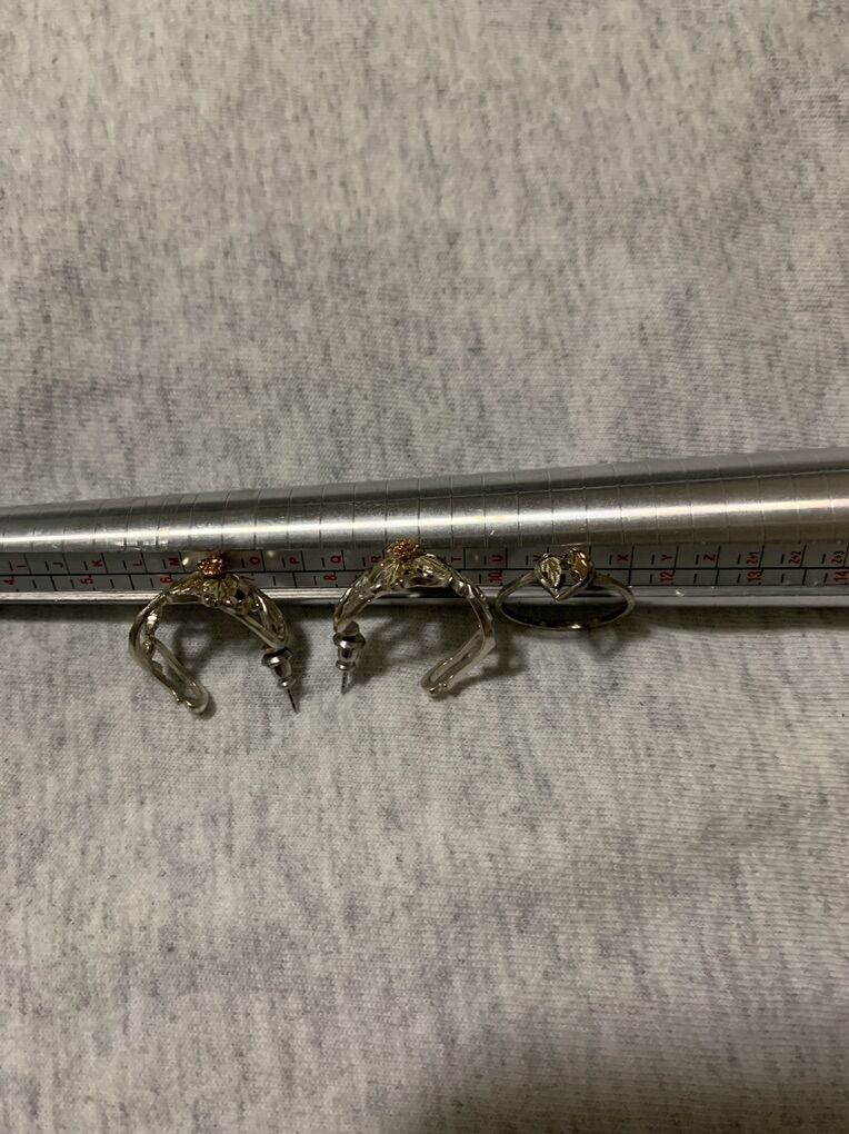 Black Hills Gold Earrings And Ring main part is 925 flowers and leaves are 12k gold ring is around size 7.