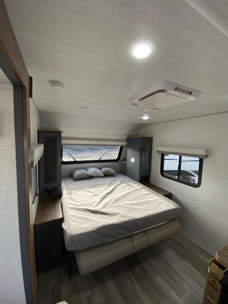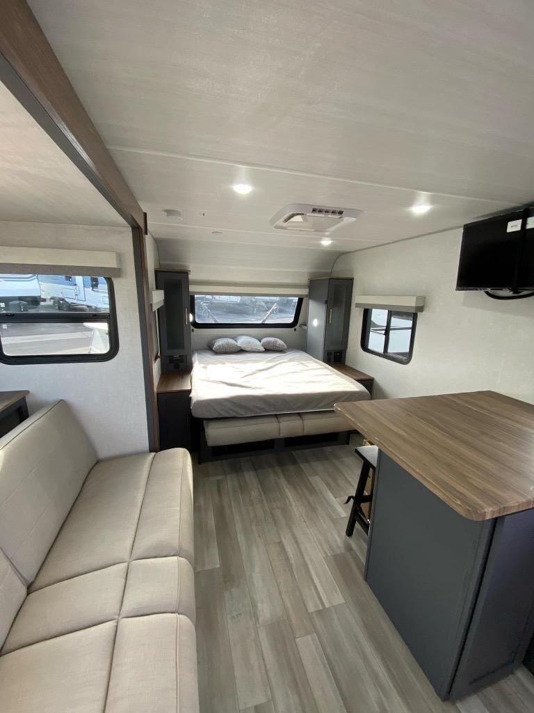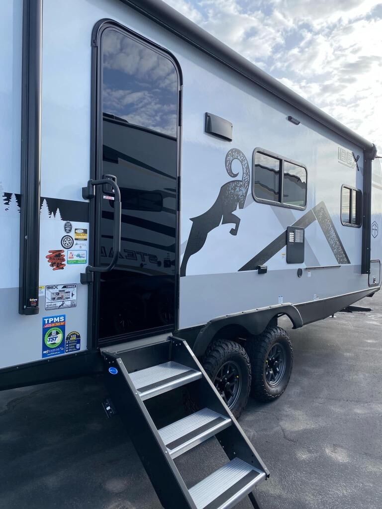 With any IBEX travel trailer or toy hauler by Forest River, you will find a fully enclosed underbelly with radiant foil for added insulation and a Cold Weather Package with 12V heated tank pads to help extend your camping season. There are also laminated walls with aluminum construction and Azdel composite substrate and a TPMS system with a wireless display so you can easily keep an eye on your tire pressure levels. The mandatory XLT Package also comes with a rugged tire and wheel package, solid surface entry steps, and a solar package with a 200W solar panel, 20A charge controller, and 2000W inverter prep.