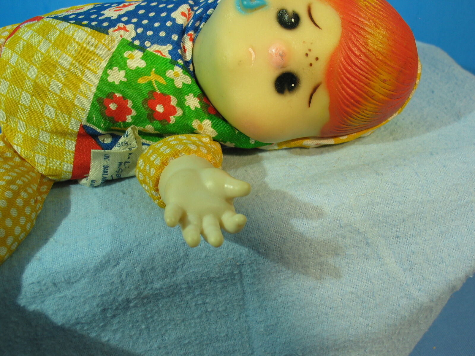 Doll is carry around smaller size. Tear on side check of face. Pellets in body. Sold As-IS only. Cash only pick up no delivery.