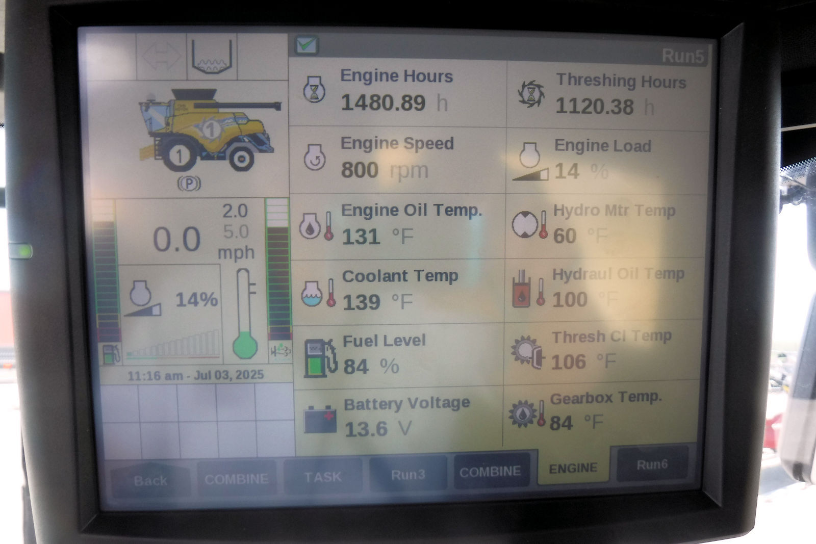 Engine hrs. 1480.89, Threshing hrs. 1120.38