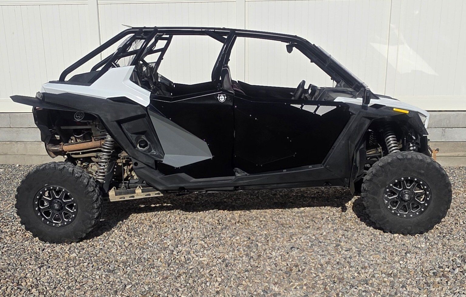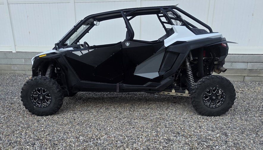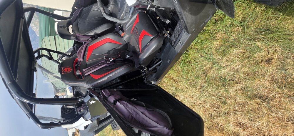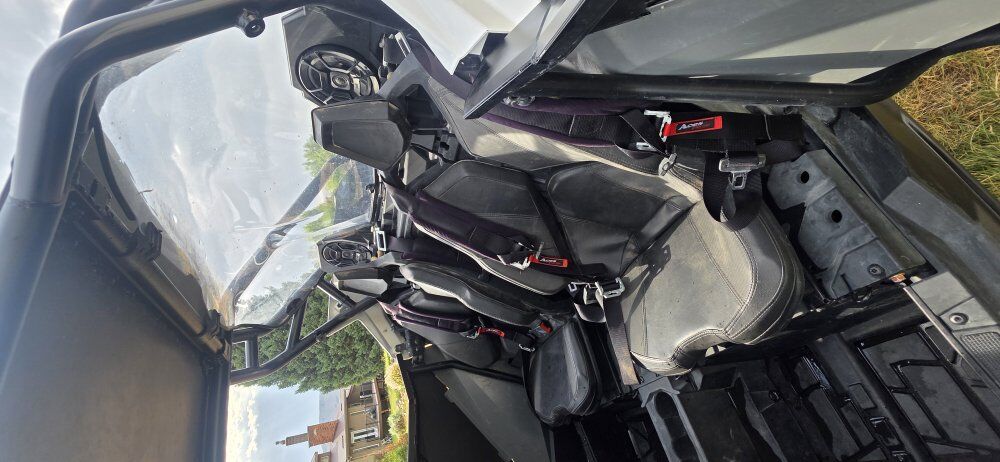 Add ons: Polaris Full Glass Windshield, Back Panel, Metal Roof, Front and Rear Cargo Boxes, and rear view mirror. Pro Armor Full doors Pro Armor Front seats 4 point harness for all 4 seats Mud flaps and block offs Door Bags DRT Front Winch Bumper Polaris 4500lb Winch/ Wireless Remote Shock Theropy Springs Ricochet Off road Skid plate, A arm and trailing arm guards Tusk Bead lock wheels 31x10x15 Carnivors Boss Audio BT radios with 6 in speaker in stock locations. 3ft LED Whips LED Rock Lights Tusk Side Mirrors Tusk Wing Vents PLM (EVO) Exhaust S&B Partical Separator Evo j pipe, boost tube and BOV R1 industry tune and HP tuner XTC Street League Kit