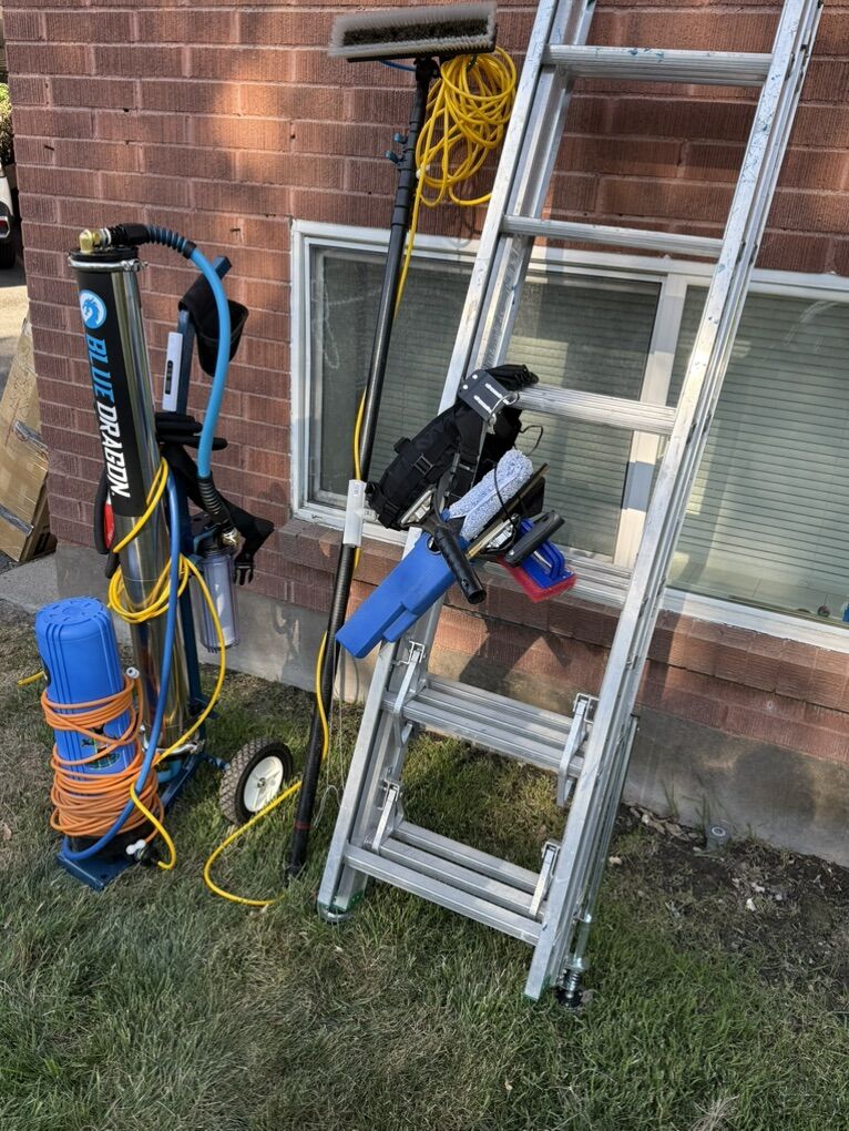 • Water fed pole system with 32 ft pole, brush , tds meter, and 100 ft hose. Only $99 per day