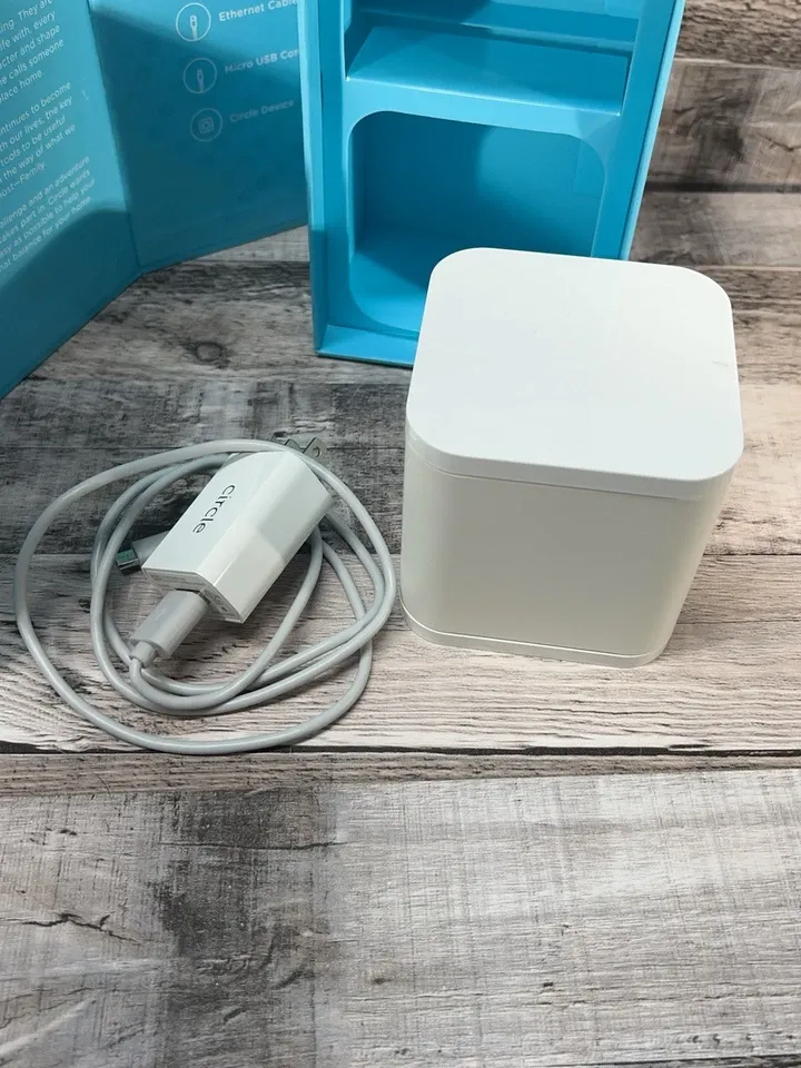 Comes with Circle, Power Cord, Power Supply and ethernet cable. Ready to connect and configure. Powers up and lashes waiting for a connection to the Circle App. Shipping would be $10.