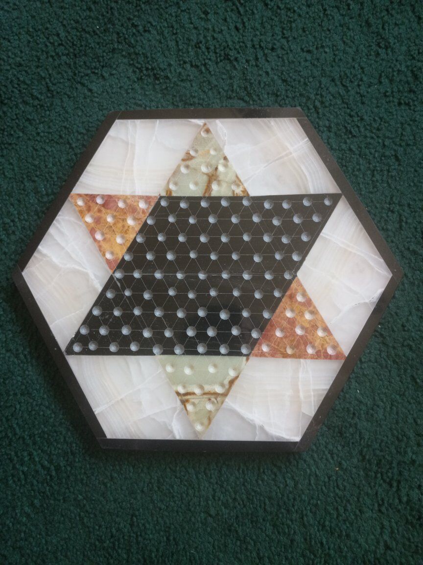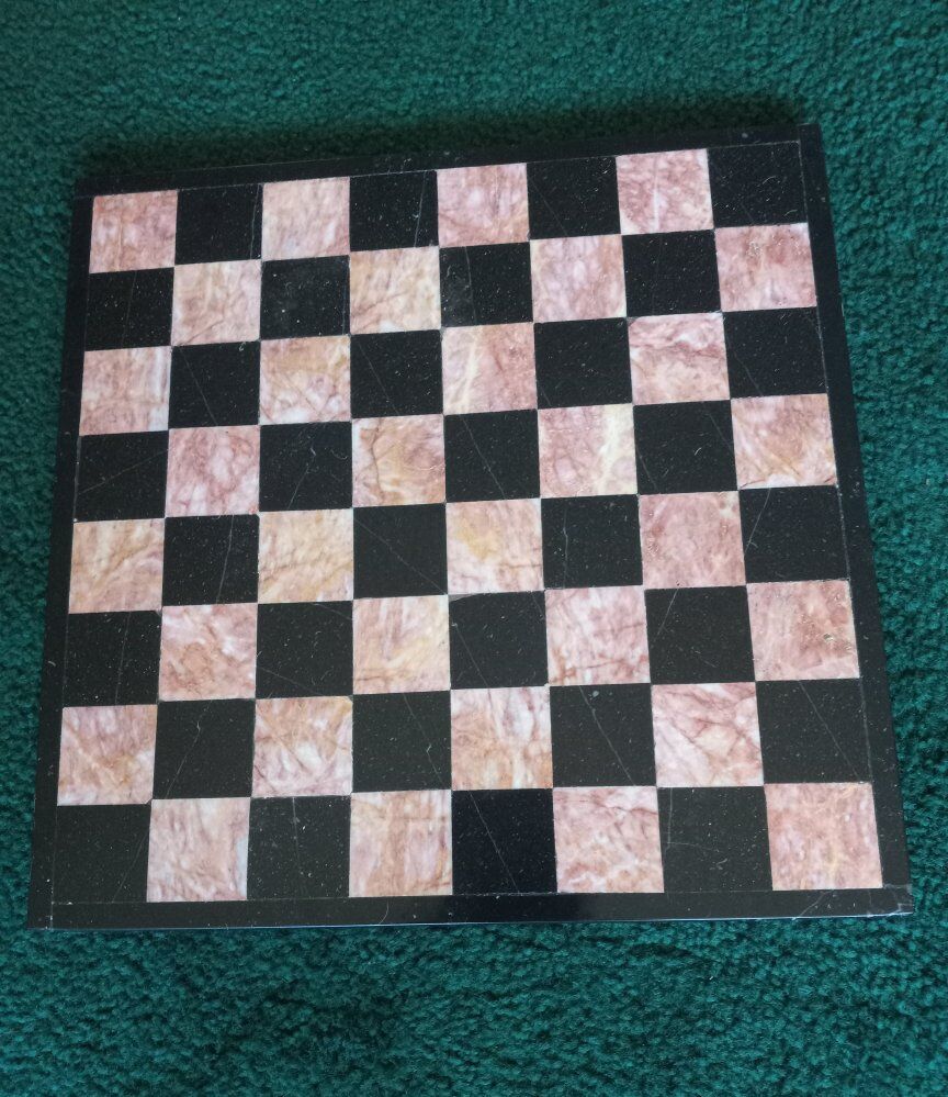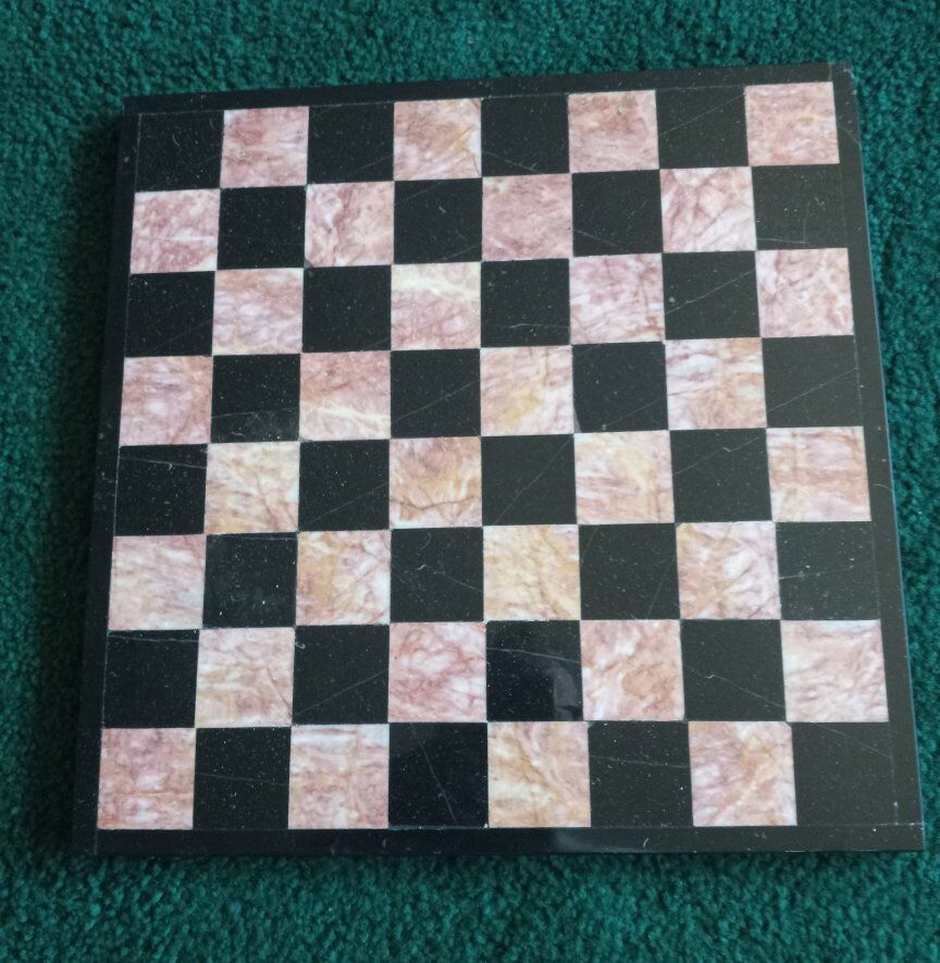 Vintage game boards each sold separately for price listed. 1 Chinese marble quartz onyx .marble game board beautiful piece 14.5" wide 1"thick. 1 ONYX chess board coral and black 13.5" dia. x 1/4" thick. beautiful coloring. Each sold separate for price listed.