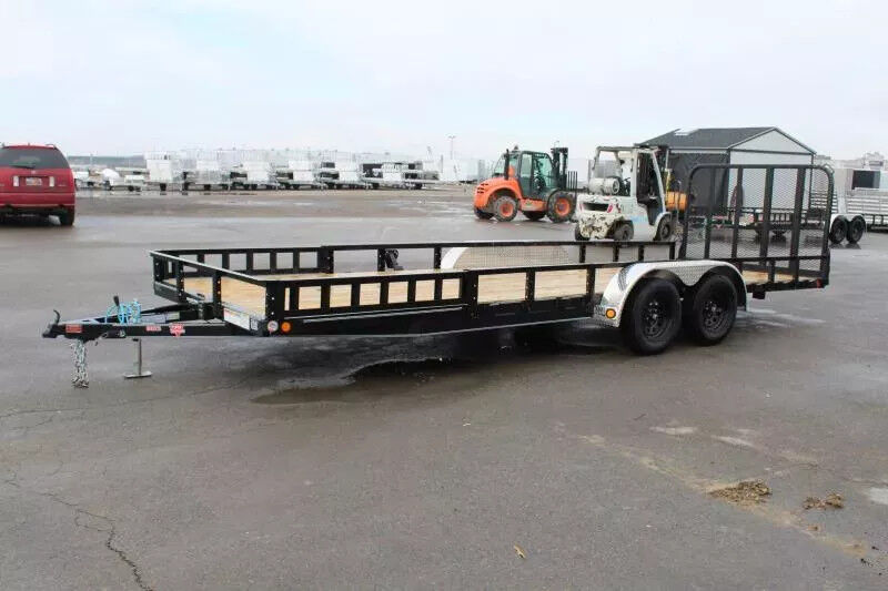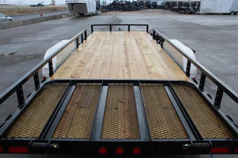 Stock Number: PJ6140 Trailer Includes Following Options: ATV Front Ramps Standard Options: 9,899 lbs. GVWR 5,200 lb. x (2) G.A.W.R. 5/16" Grade 30 Safety Chain w/Clevis hook (2 each) Bulldog Pipe Mount Swivel Jack (5,000 lb.) 2 - 35,200# (Dexter) One Electric Axle 4-Leaf Double-eye Spring Suspension 15" Black Spoke Wheels ST225/75R15 Radial Tires (1,820 lbs.) 3-1/2" x 1-1/2" (ID) Stake Pockets 9" x 72" Treadplate Removable Aluminum Fenders 4" Channel Wrapped Tongue 2-1/2" Angle Crossmembers on 24" Centers 2" x 2" Removable Side Rail 2" x 2" Top Rail 2" Treated Canadian Spruce Pine Fir Deck 83" Wide Deck Flushmount 6" Oval Lifetime LED Tail Lights All-Weather Wiring Harness (7-way RV) Powdercoat 5 year Dexter Axle Warranty WASATCH TRAILER SALES - LARGEST TRAILER SELECTION IN UTAH Springville: (801) 528-1581 | 1180 S 2000 W, Springville UT, 84663