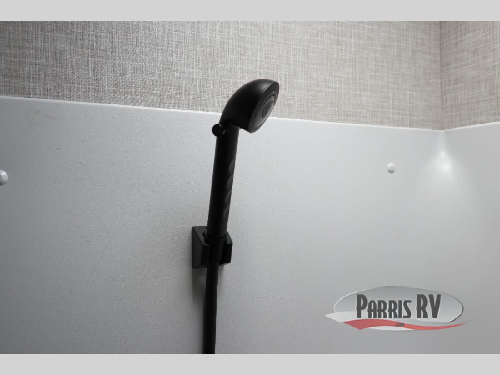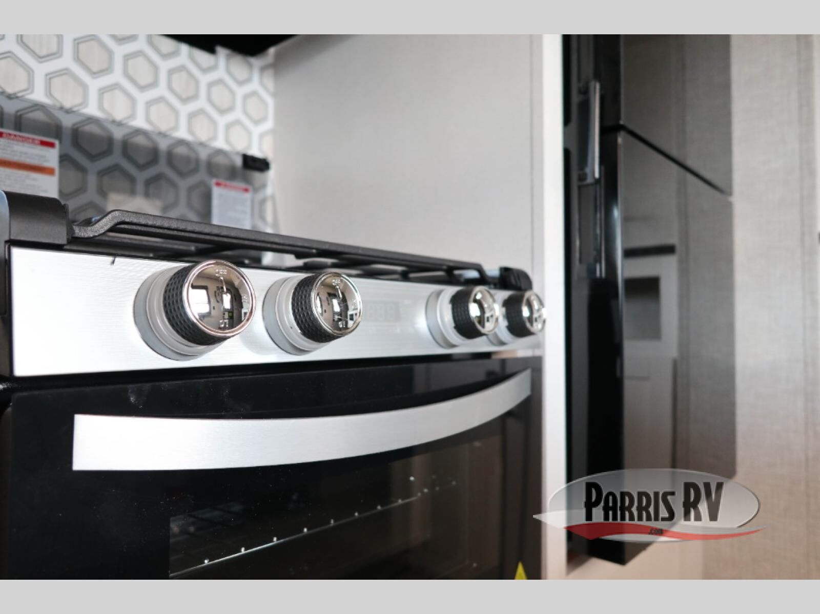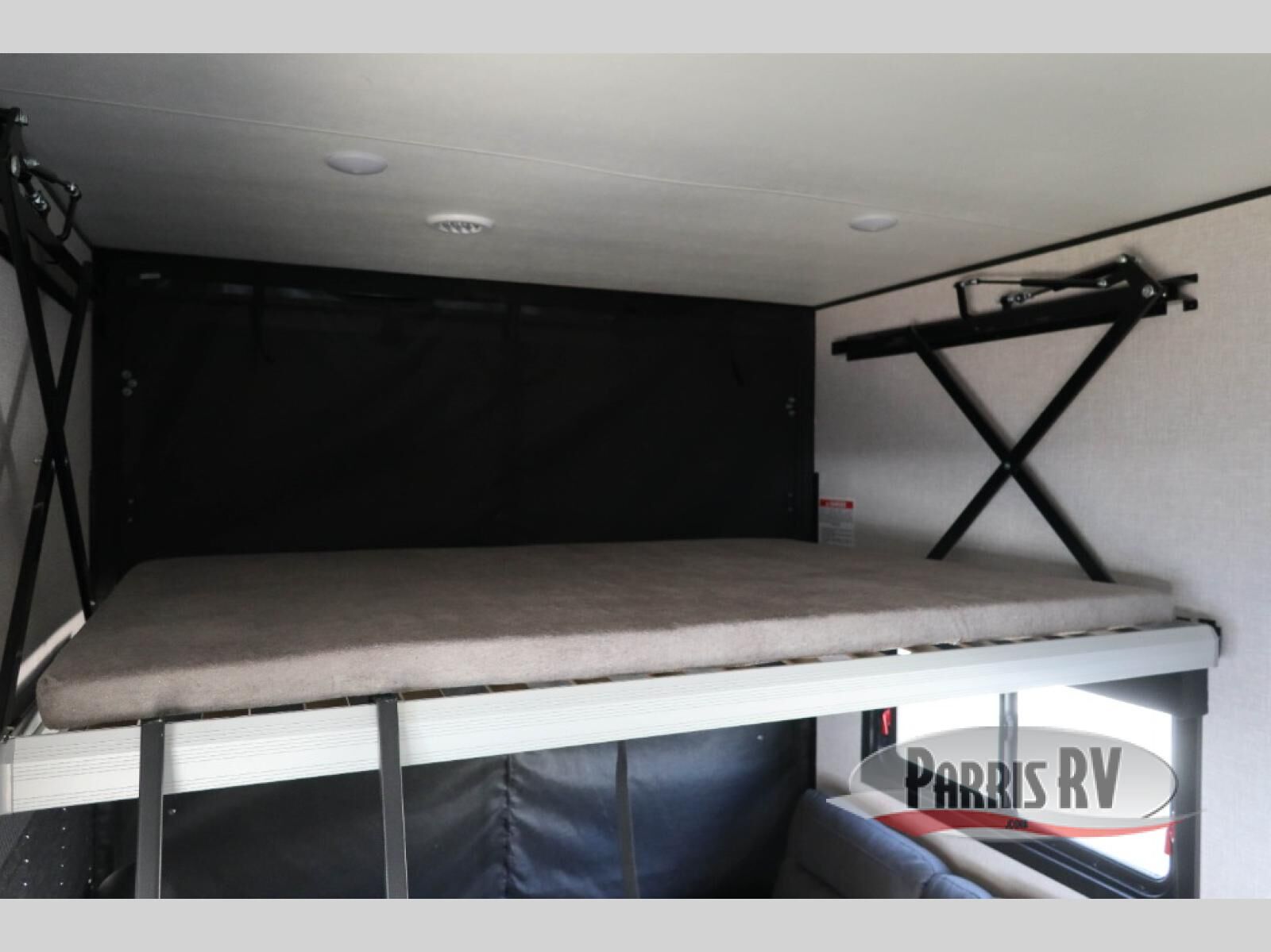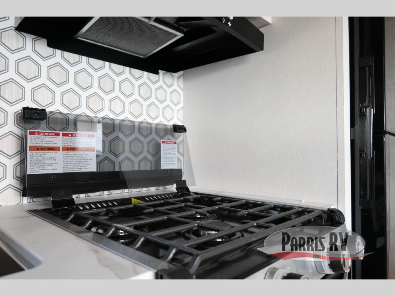You will have everything you need for a comfortable camping trip in this toy hauler! Unload your off-road toy easily from the cargo area featuring up to 14' of space using the spring assist 8' ramp door for a fun day out on the trails. The fully equipped kitchen has a three burner cooktop to fry up some eggs in the morning, and you can enjoy them at either the flip-up bar top with two stools or at the rear convertible sofa and two chairs in the other side if the removable table. The dual entry bathroom is easy to access from the front private bedroom and it has a radius shower to wash the mud out of your hair.