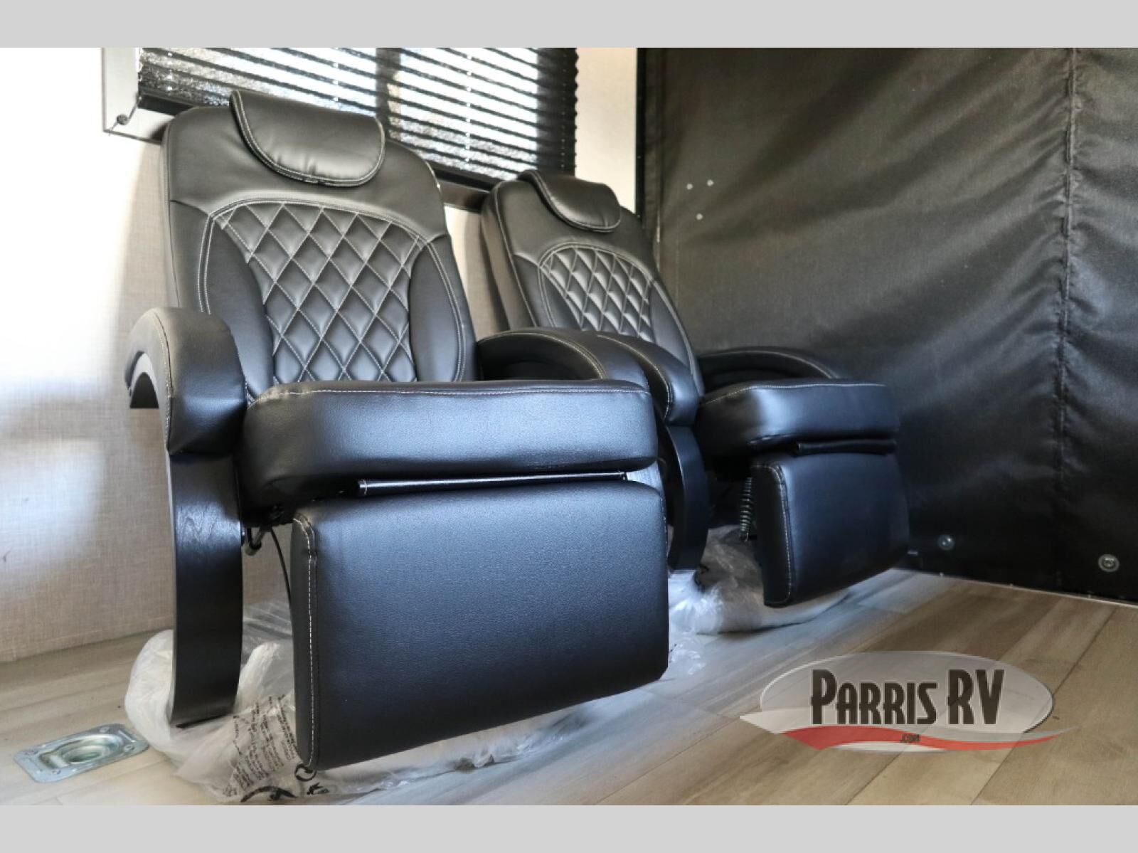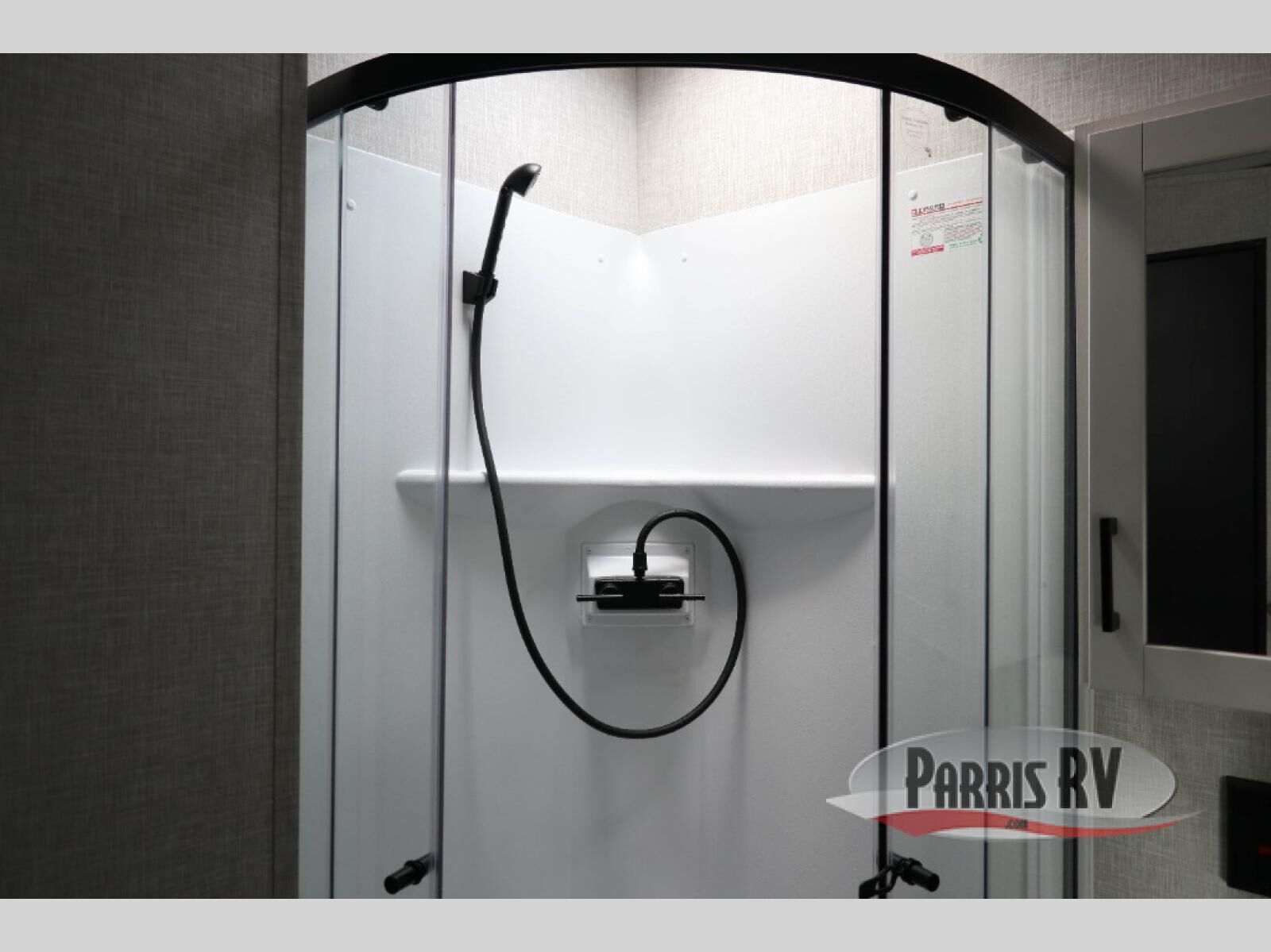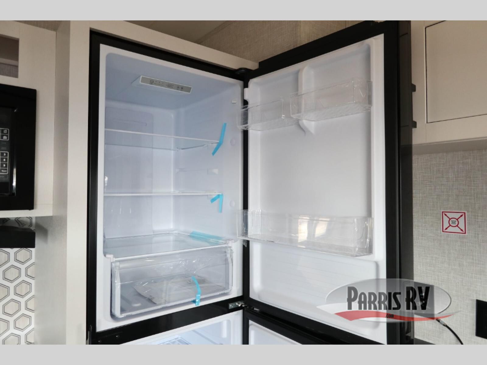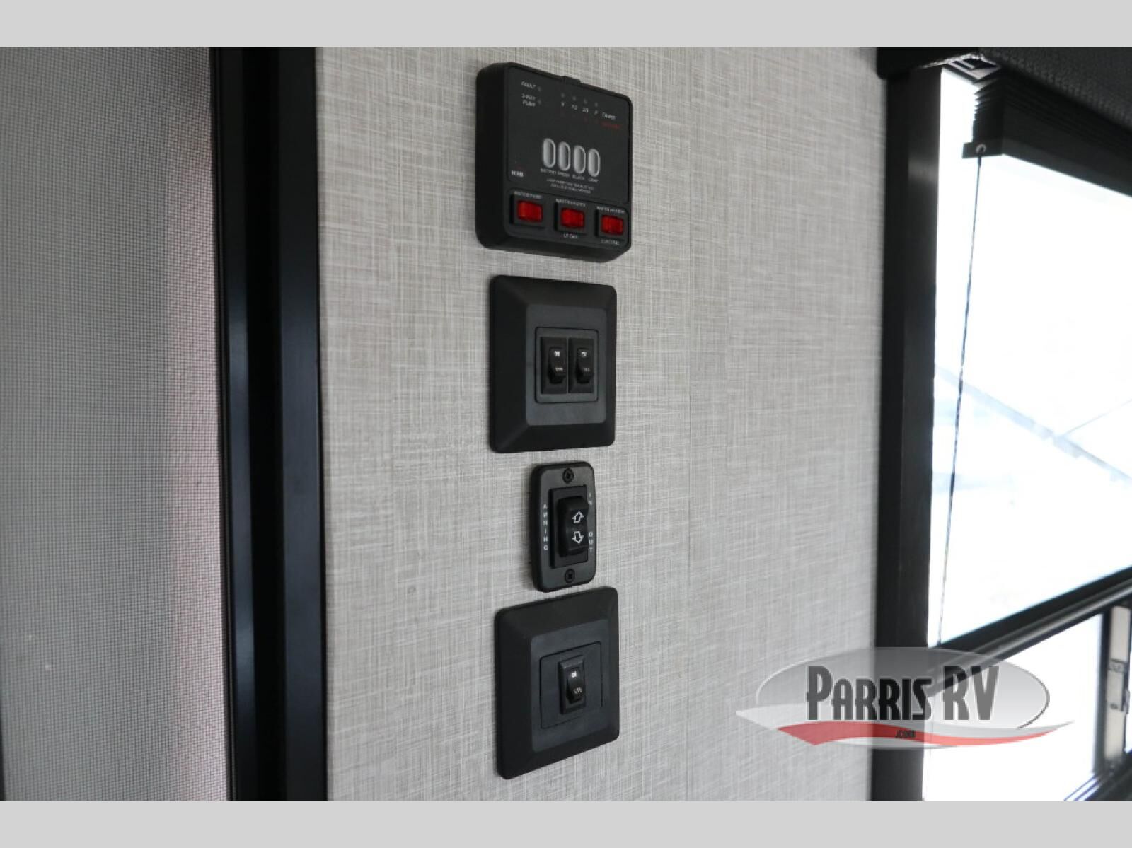 You will have everything you need for a comfortable camping trip in this toy hauler! Unload your off-road toy easily from the cargo area featuring up to 14' of space using the spring assist 8' ramp door for a fun day out on the trails. The fully equipped kitchen has a three burner cooktop to fry up some eggs in the morning, and you can enjoy them at either the flip-up bar top with two stools or at the rear convertible sofa and two chairs in the other side if the removable table. The dual entry bathroom is easy to access from the front private bedroom and it has a radius shower to wash the mud out of your hair.
