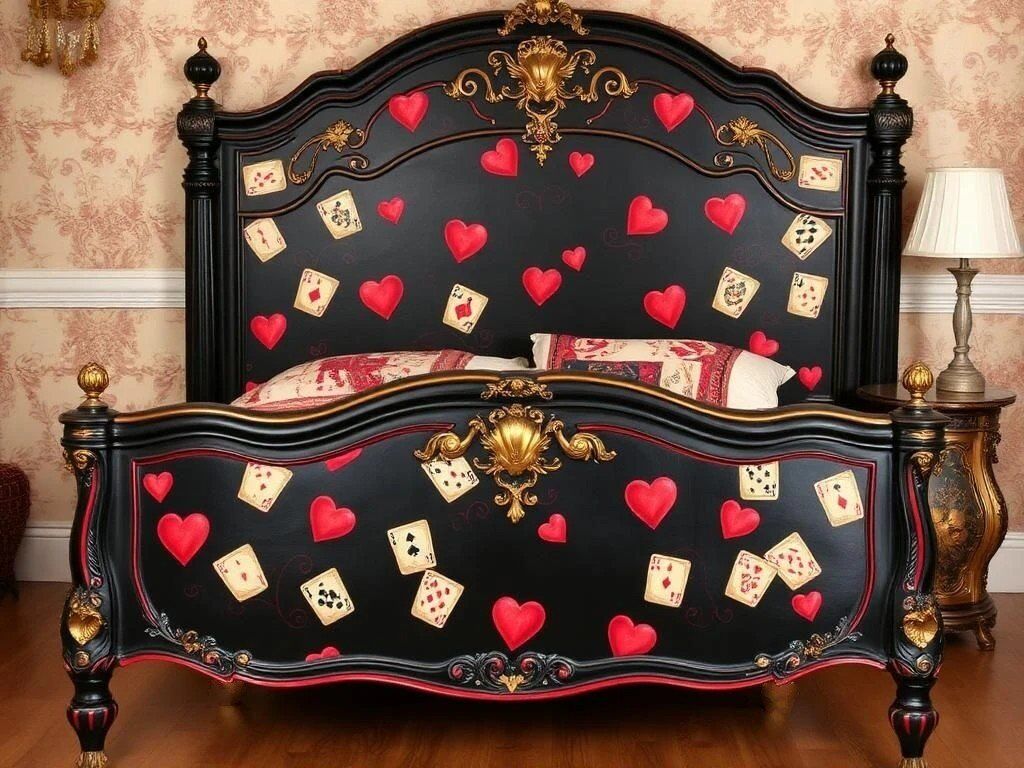 Create the perfect bedroom and add to your home's Queen of Hearts Playing Cards-loving aesthetic! We can create custom paint colors to suit your preferences, and decoupage images as you'd like. This will be an heirloom piece to cherish for generations. You can either provide your own furniture to upcycle or we work locally to source just the right antique bedroom furniture for your home. We look forward to designing your Queen of Hearts-themed reading nook space!