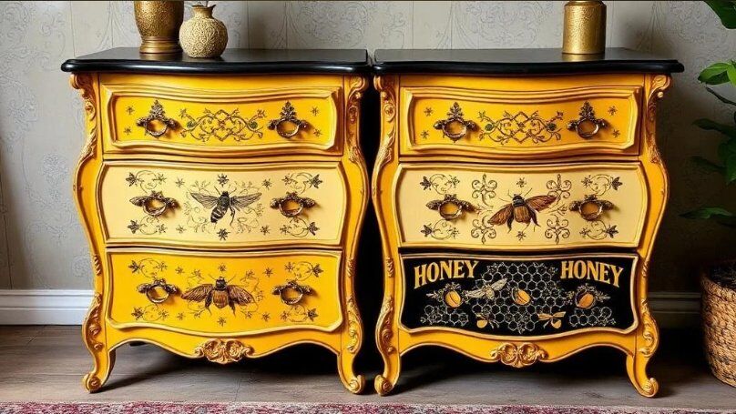 Create the perfect beehive & bees bedroom set, and add to your home's Beehive-loving aesthetic! We can create custom paint colors to suit your preferences, and decoupage images as you'd like. This set will be an heirloom piece to cherish for generations. Commission us to Upcycle your own furniture, or we will work locally to source just the right antique furniture for your home. We look forward to designing your Beehive -themed bedroom set!
