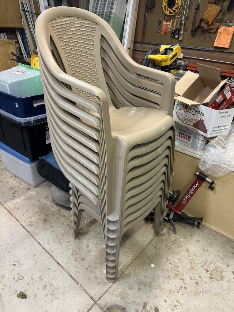 Venmo10 outdoor chairs available. They are sturdy and comfortable. They can be bought all together or one by one. $5 each.