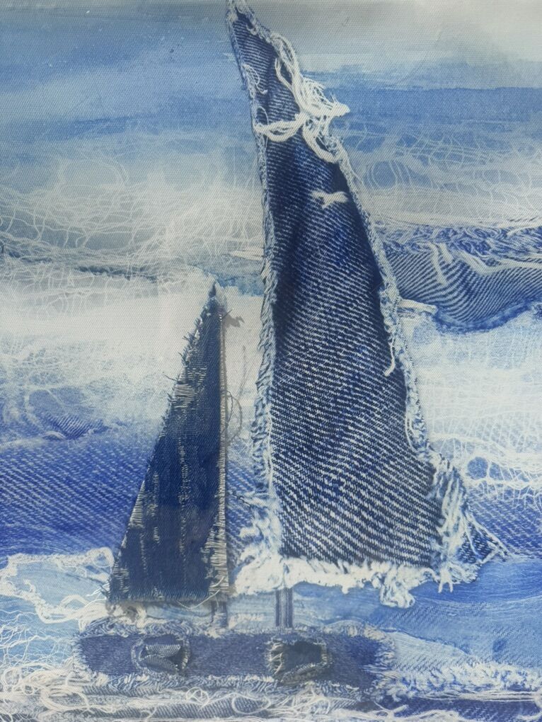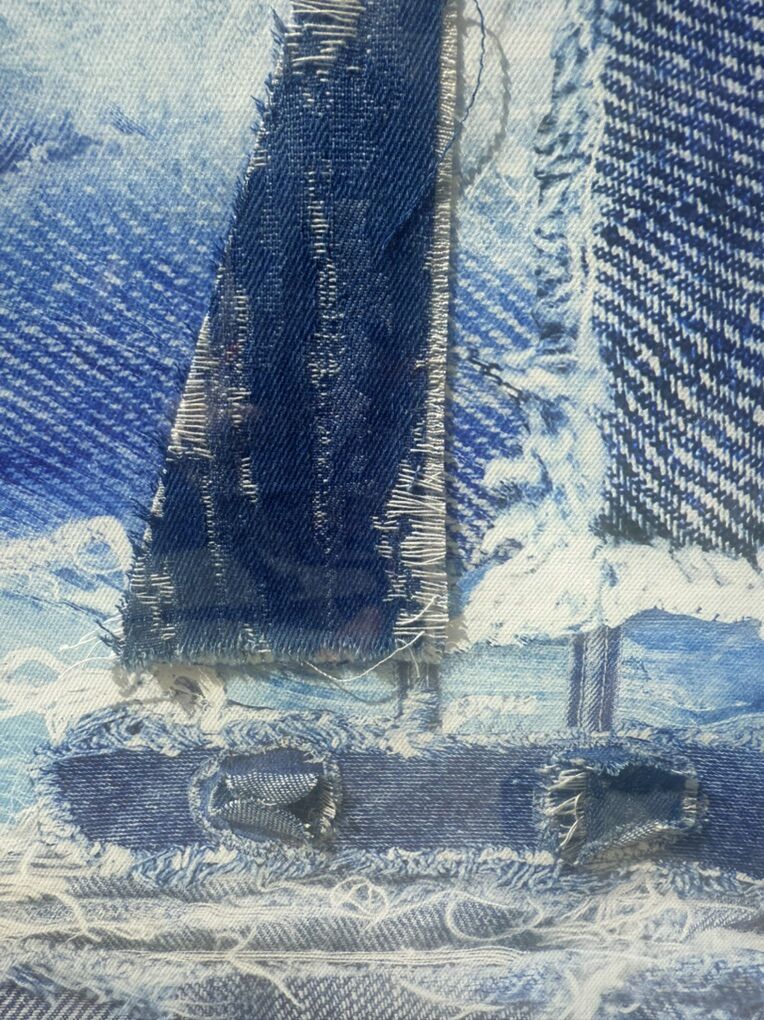 ApplePayBrand new, in packaging. PROCIDA Canvas Print Wall Art for Living Room Nautical Sailboat Room Decor, Blue Denim Applique, 3D Artwork for Office Home Bedroom Bathroom Kitchen. Wrapped canvas Oil Painting Ready to Hang 23.5x23.5 Inch