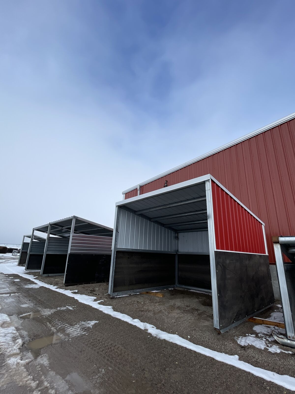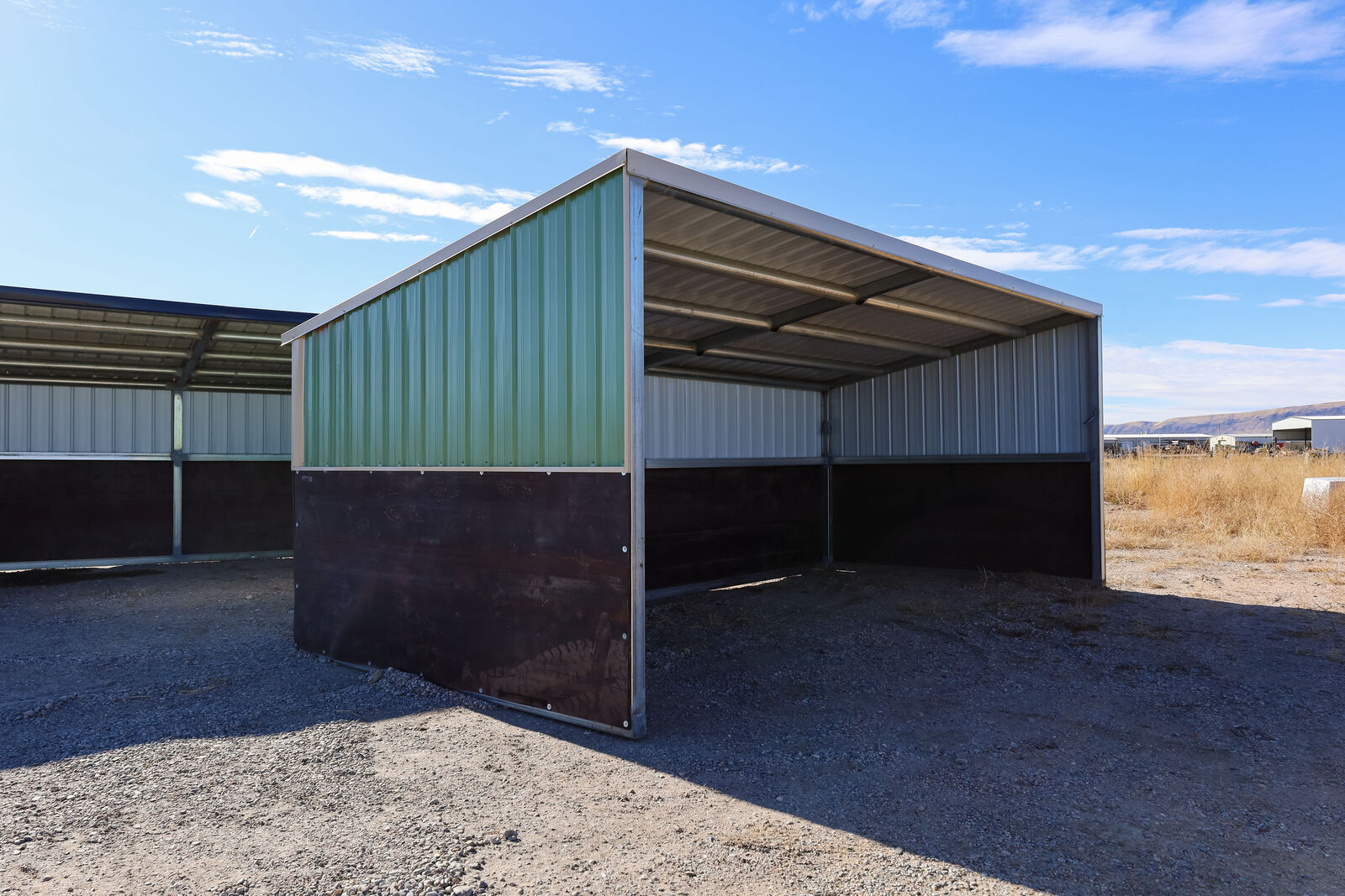 Get yourself the heaviest-duty livestock shelter around. These are made with 4" and 5" galvanized 10-gauge. steel, 3/4" kick-proof rubber belting, and high-quality colored tin.