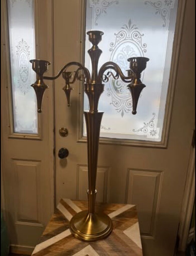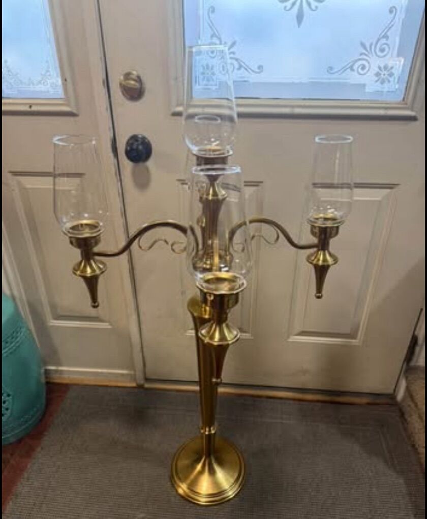 Measurements 38 Tall 45 high to the top of the hurricane glass shade 22 wide Note- one of the glass shade has a small stain, please see pictures