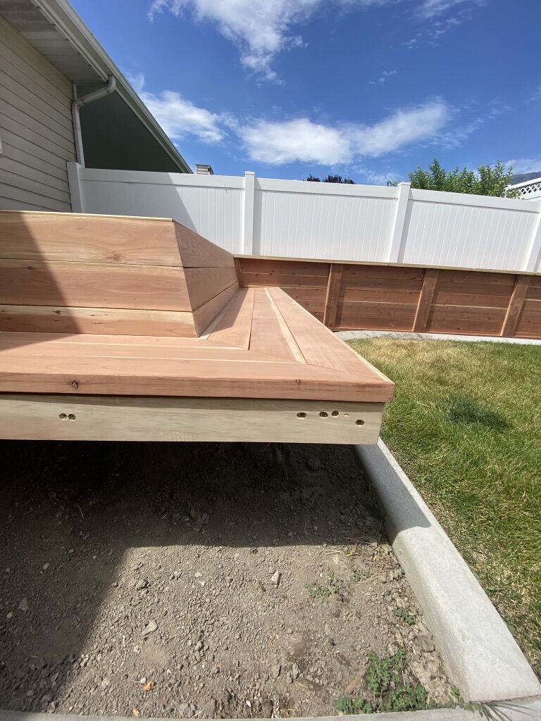 This is an example of what a customer was hoping for. They wanted a bench incorporated into an “L” shape garden box. They wanted it to be comfortable for both them, and their grandkids. A few highlights: MORE COMFORTABLE\