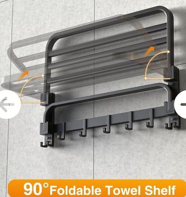 Venmo24IN INTEGRATED DESIGN TOWEL RACK The bathroom towel rack integrates 3-in-1 design of towel rack, towel bar and towel hanger, which takes up less space to achieve more functionality and easy separation of wet and dry. In addition, an extra 7in coat rack Wall Mounted is included for more organised storage. 90 FREE FOLDING The bathroom towel holder are folding design, when not in use up 90 vertical folding storage, the upper towel shelf and the lower bathroom towel bar two places can be folded independently, very suitable for flats, bathrooms, toilets, kitchens, balconies, bedrooms, laundry rooms and drying rooms, etc., greatly improve the space utilisation. PREMIUM SPACE ALUMINIUM MATERIAL The towel rack wall mounted is crafted from aviation-grade aluminum,