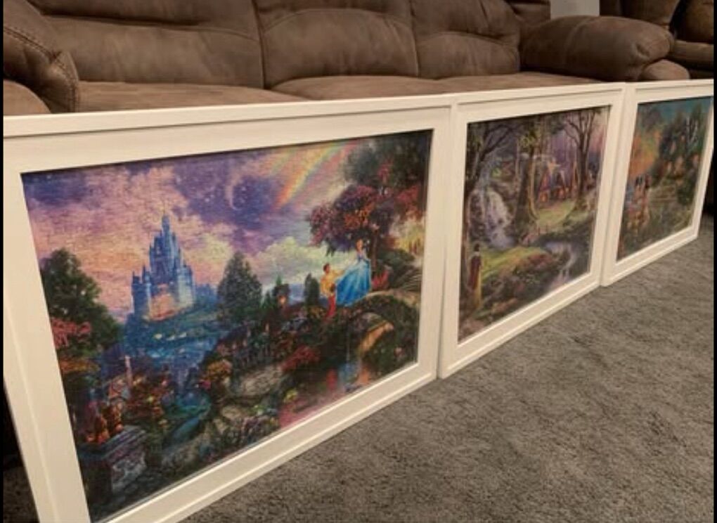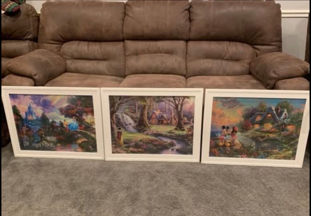 Thomas Kinkade Disney Cinderella wishes upon a dream, Mickey & Minnie Sweetheart Cove Snow White in the forest $50 for all Size 18x24 in ( 45x60 cm ) selling all together!