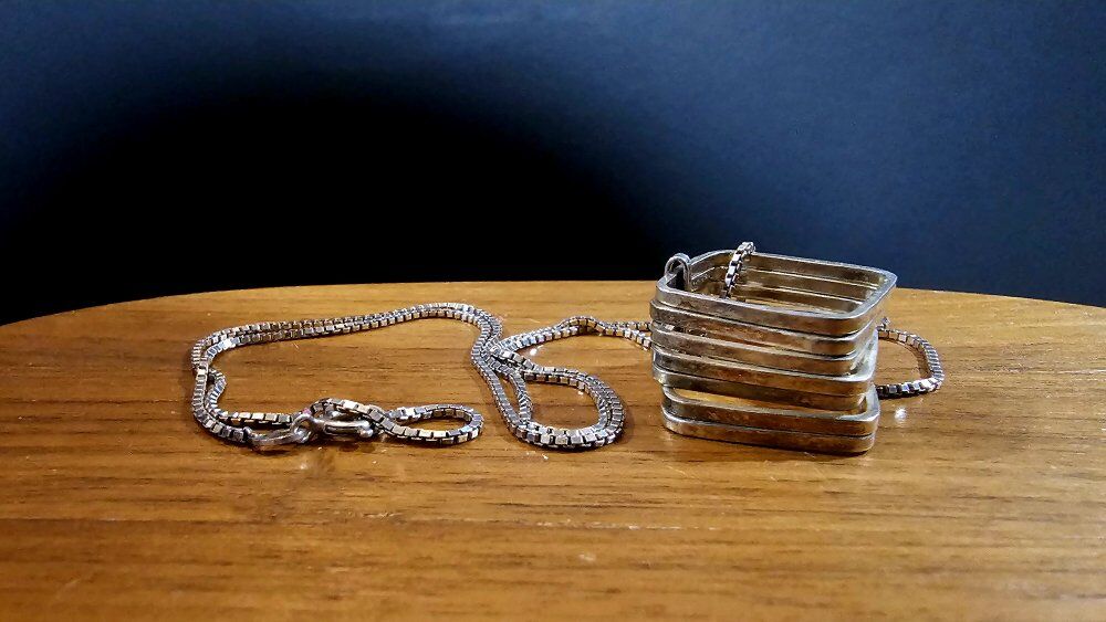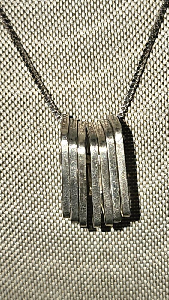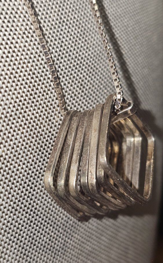 WOW!! Seriously a VERY UNIQUE VINTAGE ONE-OF-A-KIND 7 piece stacked square STATEMENT piece pendant!! Really would be great layered up or worn alone. Comes on a LONG 24" box SS 925 box chain.