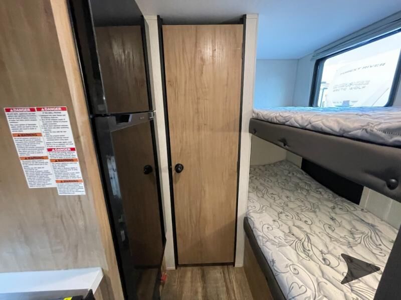 Forest River Cherokee Wolf Pup Black Label travel trailer 16BHSWBL highlights: Bunk Beds Queen Bed Outside Storage Outside Mini Kitchen The whole family can sleep comfortably in this travel trailer! It has a set of bunk beds for the kids or guests to sleep on, and you can sleep comfortably on the front queen bed with overhead cabinets and a shelf. There is even an exterior storage plus doorthat accesses the storage space under the bottom bunk. The chef will enjoy preparing their best home cooked meals either indoors with the high output cooktop or at the outside mini kitchen while staying protected by the 12' power awning! Each one of these Forest River Cherokee Wolf Pup Black Label travel trailers and toy haulers are lightweight and easy to tow! They are fully self contained with ample tank capacities, an abundance of storage space, and filled with at home amenities. Some features included with the Black Label Package that will set these models apart are the LG solid surface countertops, aluminum rims, designer fabrics, and upgraded bedspreads; see dealer for more details. The aerodynamic smooth radius front profile, Power Gear frame technology, and space saver rail design make them easier to maneuver. You will also appreciate the seamless roofing membrane with heat reflectivity to keep the sun from making your unit a hot box. The tongue and groove plywood flooring will hold up for years of fun and the USB charging stations help to keep your electronics at 100% while you're away. Come find the best model for you today!