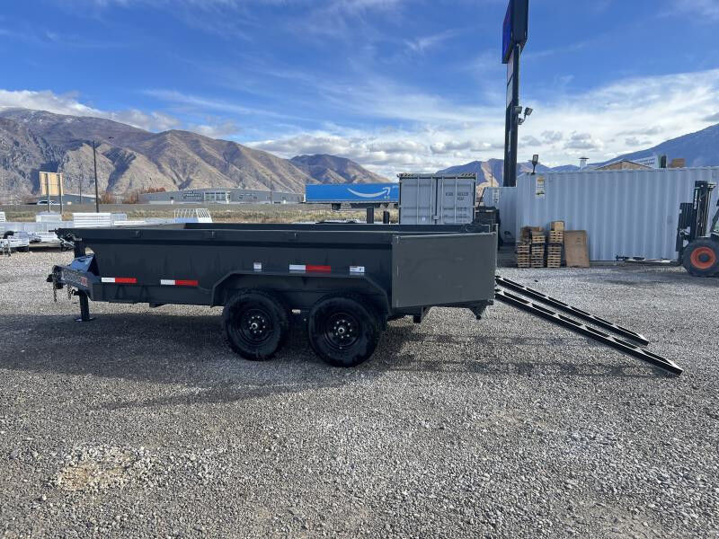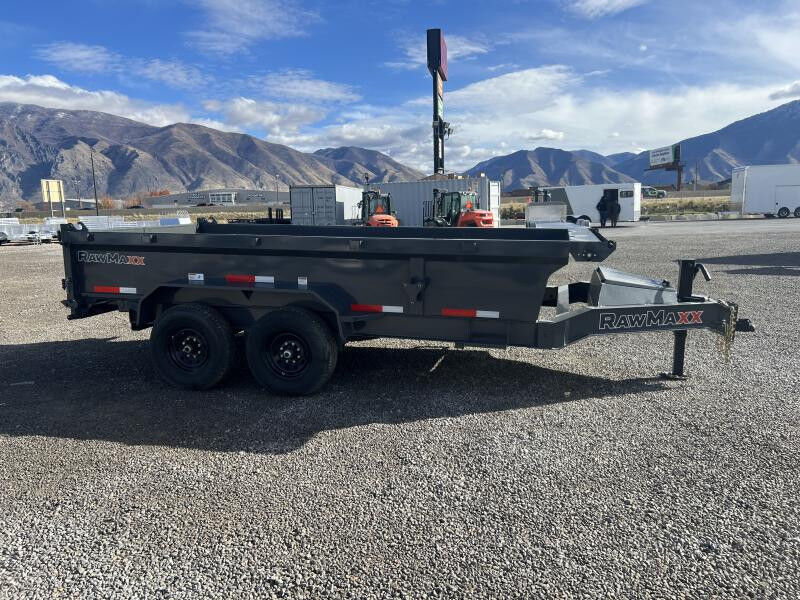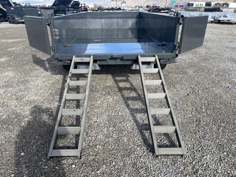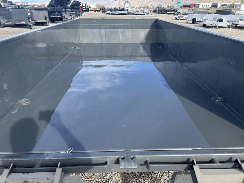 Stock #: RM1546 Trailer Specs: Color: Shadow Grey Powdercoat Overall: Length: 19'0" Width: 8'6" Interior/Bed: Length: 14' Width: 7' Side Height: 24" Weight: 4,608 lbs. | GVWR: 14,000 lbs. | Payload: 9,392 lbs. Axle(s): 7,000 lb. Dexter Spring Braked Axle w/ EZ Lube Hubs Tire/Wheel: ST235/80R16 | Load Range E Coupler: Type: Bumper Pull | Size 2 5/16" | 7-Way 12V Connector 8"x13lb I-Beam Main Frame | 3" Channel Cross-Members | 16" OC 5 Year Dexter Axle Warranty 3 Year Structural Warranty 1 Year Limited Warranty Standard Features: 7 Cubic Yard Capacity 12G Steel Side Walls w/ Reinforced Rails 10G Steel Floor Plate (4) Welded D-Rings Power Up/Down KTI Hydraulic Pump 5" Hydraulic Cylinder w/ Scissor Lift Rear Barn & Spreader Gate 10K Drop Leg Jack Safety Chains All-Weather Wiring Harness Breakaway System w/ Charger LED DOT Approved Lights Powdercoated WASATCH TRAILER SALES - LARGEST TRAILER SELECTION IN UTAH Springville: (801) 528-1581 | 1180 S 2000 W, Springville UT, 84663 View More Inventory: www.wasatchtrailer.com