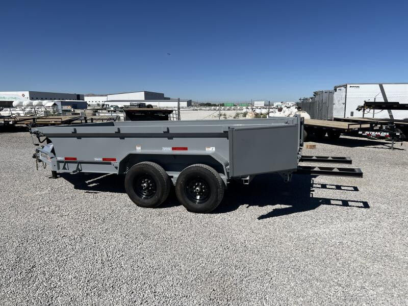 Stock #: RM1548 Trailer Specs: Color: Lave Grey Powdercoat Overall: Length: 19'0" Width: 8'6" Interior/Bed: Length: 14' Width: 7' Side Height: 24" Weight: 4,608 lbs. | GVWR: 14,000 lbs. | Payload: 9,392 lbs. Axle(s): 7,000 lb. Dexter Spring Braked Axle w/ EZ Lube Hubs Tire/Wheel: ST235/80R16 | Load Range E Coupler: Type: Bumper Pull | Size 2 5/16" | 7-Way 12V Connector 8"x13lb I-Beam Main Frame | 3" Channel Cross-Members | 16" OC 5 Year Dexter Axle Warranty 3 Year Structural Warranty 1 Year Limited Warranty Standard Features: 7 Cubic Yard Capacity 12G Steel Side Walls w/ Reinforced Rails 10G Steel Floor Plate (4) Welded D-Rings Power Up/Down KTI Hydraulic Pump 5" Hydraulic Cylinder w/ Scissor Lift Rear Barn & Spreader Gate 10K Drop Leg Jack Safety Chains All-Weather Wiring Harness Breakaway System w/ Charger LED DOT Approved Lights Powdercoated WASATCH TRAILER SALES - LARGEST TRAILER SELECTION IN UTAH Springville: (801) 528-1581 | 1180 S 2000 W, Springville UT, 84663 View More Inventory: www.wasatchtrailer.com