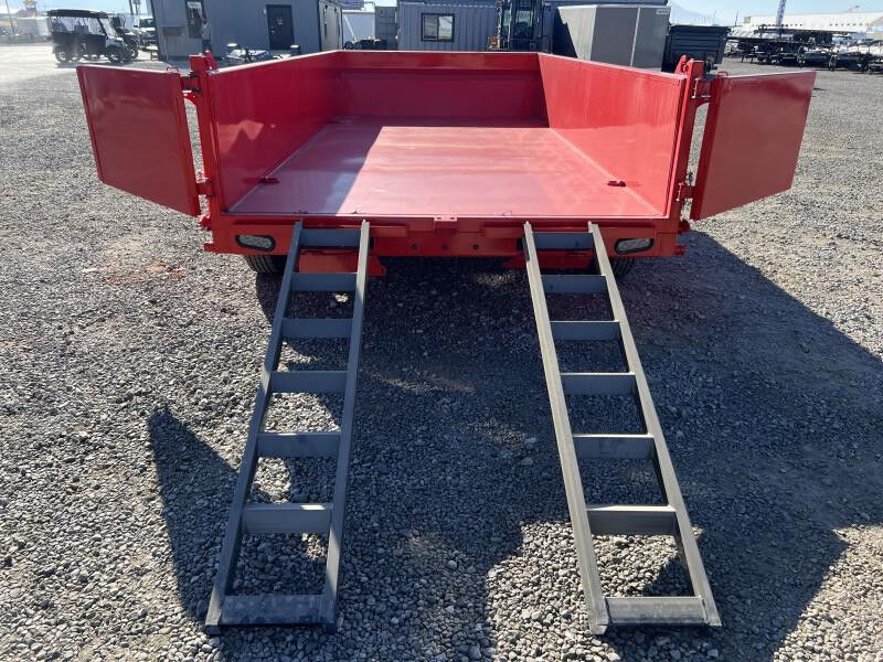 Stock #: RM1544 Trailer Specs: Color: Red Powdercoat Overall: Length: 19'0" Width: 8'6" Interior/Bed: Length: 14' Width: 7' Side Height: 24" Weight: 4,608 lbs. | GVWR: 14,000 lbs. | Payload: 9,392 lbs. Axle(s): 7,000 lb. Dexter Spring Braked Axle w/ EZ Lube Hubs Tire/Wheel: ST235/80R16 | Load Range E Coupler: Type: Bumper Pull | Size 2 5/16" | 7-Way 12V Connector 8"x13lb I-Beam Main Frame | 3" Channel Cross-Members | 16" OC 5 Year Dexter Axle Warranty 3 Year Structural Warranty 1 Year Limited Warranty Standard Features: 7 Cubic Yard Capacity 12G Steel Side Walls w/ Reinforced Rails 10G Steel Floor Plate (4) Welded D-Rings Power Up/Down KTI Hydraulic Pump 5" Hydraulic Cylinder w/ Scissor Lift Rear Barn & Spreader Gate 10K Drop Leg Jack Safety Chains All-Weather Wiring Harness Breakaway System w/ Charger LED DOT Approved Lights Powdercoated WASATCH TRAILER SALES - LARGEST TRAILER SELECTION IN UTAH Springville: (801) 528-1581 | 1180 S 2000 W, Springville UT, 84663 View More Inventory: www.wasatchtrailer.com