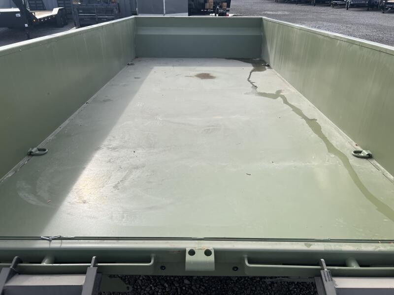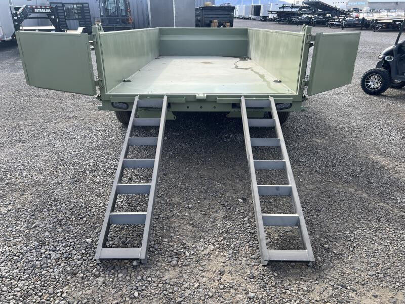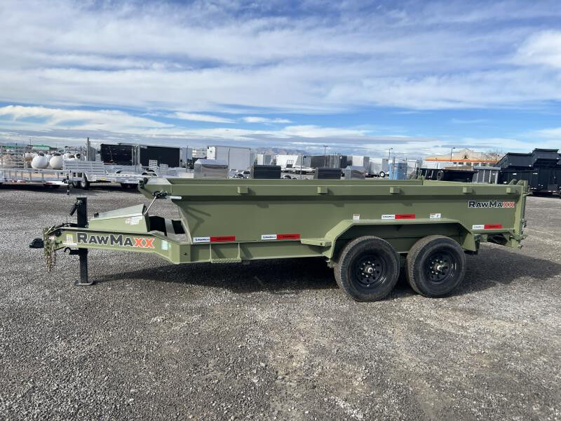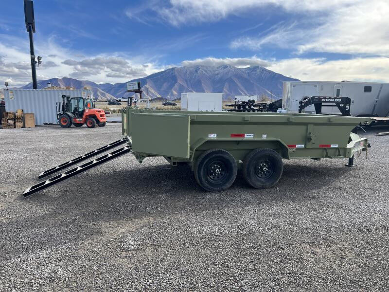 Stock #: RM1545 Trailer Specs: Color: Army Green Powdercoat Overall: Length: 19'0" Width: 8'6" Interior/Bed: Length: 14' Width: 7' Side Height: 24" Weight: 4,608 lbs. | GVWR: 14,000 lbs. | Payload: 9,392 lbs. Axle(s): 7,000 lb. Dexter Spring Braked Axle w/ EZ Lube Hubs Tire/Wheel: ST235/80R16 | Load Range E Coupler: Type: Bumper Pull | Size 2 5/16" | 7-Way 12V Connector 8"x13lb I-Beam Main Frame | 3" Channel Cross-Members | 16" OC 5 Year Dexter Axle Warranty 3 Year Structural Warranty 1 Year Limited Warranty Standard Features: 7 Cubic Yard Capacity 12G Steel Side Walls w/ Reinforced Rails 10G Steel Floor Plate (4) Welded D-Rings Power Up/Down KTI Hydraulic Pump 5" Hydraulic Cylinder w/ Scissor Lift Rear Barn & Spreader Gate 10K Drop Leg Jack Safety Chains All-Weather Wiring Harness Breakaway System w/ Charger LED DOT Approved Lights Powdercoated WASATCH TRAILER SALES - LARGEST TRAILER SELECTION IN UTAH Springville: (801) 528-1581 | 1180 S 2000 W, Springville UT, 84663 View More Inventory: www.wasatchtrailer.com
