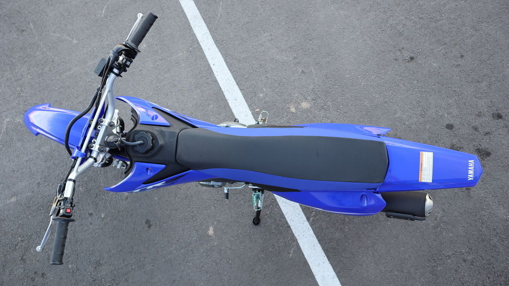 The long, YZ style gripper seat is low and comfortable, allowing easy rider movement and better bike feel. Team Yamaha inspired colors and graphics with front and side number plates echo the look of the YZ motocross lineup, while the sleek, narrow fuel tank adds to the big bike feel. Large folding, cleated foot pegs provide excellent footing even in wet or muddy conditions.