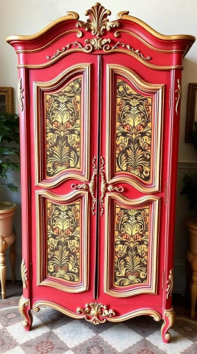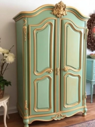 Create the perfect space to reflect your individual style and love of soft, romantic, beautiful colors, create a welcoming space for your vacation home short-term rental space guests store your blankets and throws and add to your home's unique aesthetic! We can create custom paint colors to suit your preferences, patterns and colors, shelving options, and decoupage images as you'd like. This will be an heirloom piece to cherish for generations. You can provide your own armoire to upcycle, or we work locally to source just the right antique armoire dresser for your home. We look forward to designing your romantically sweet space!