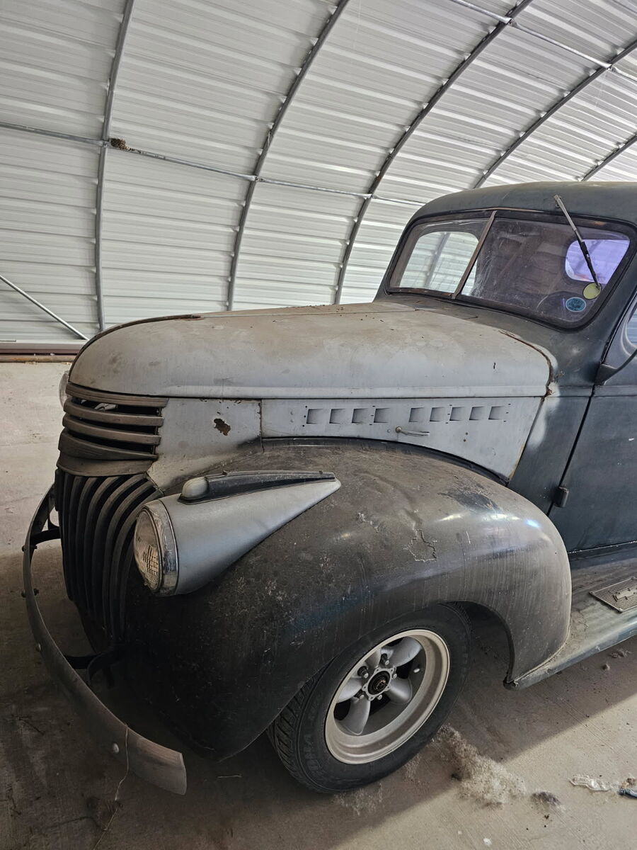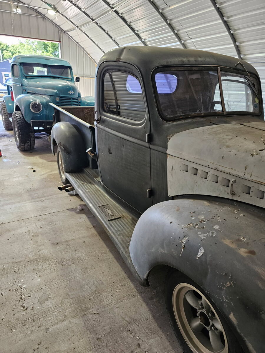 We have this amazing 46 Chevy pickup sitting on a 97 s10 frame with 327 small block!!