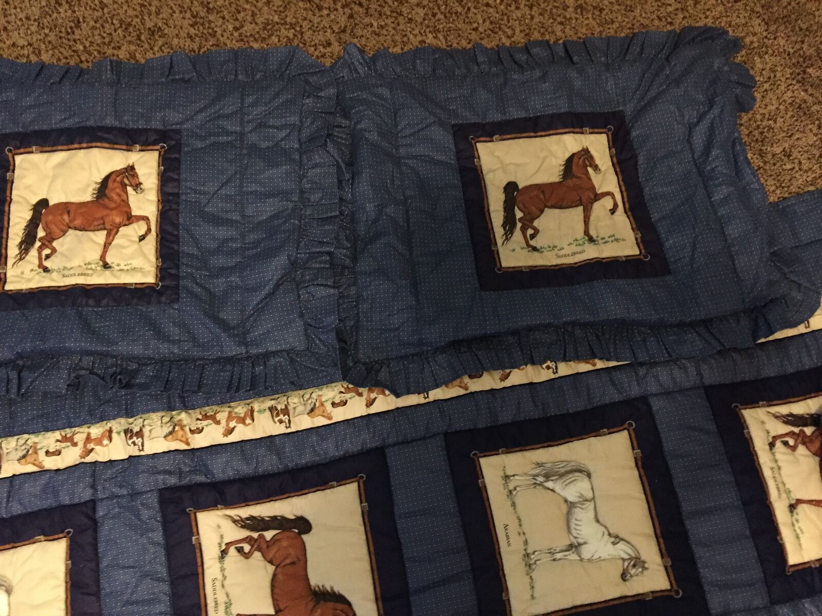 Used machine Queen size quilt, with matching shams and bed skirt.