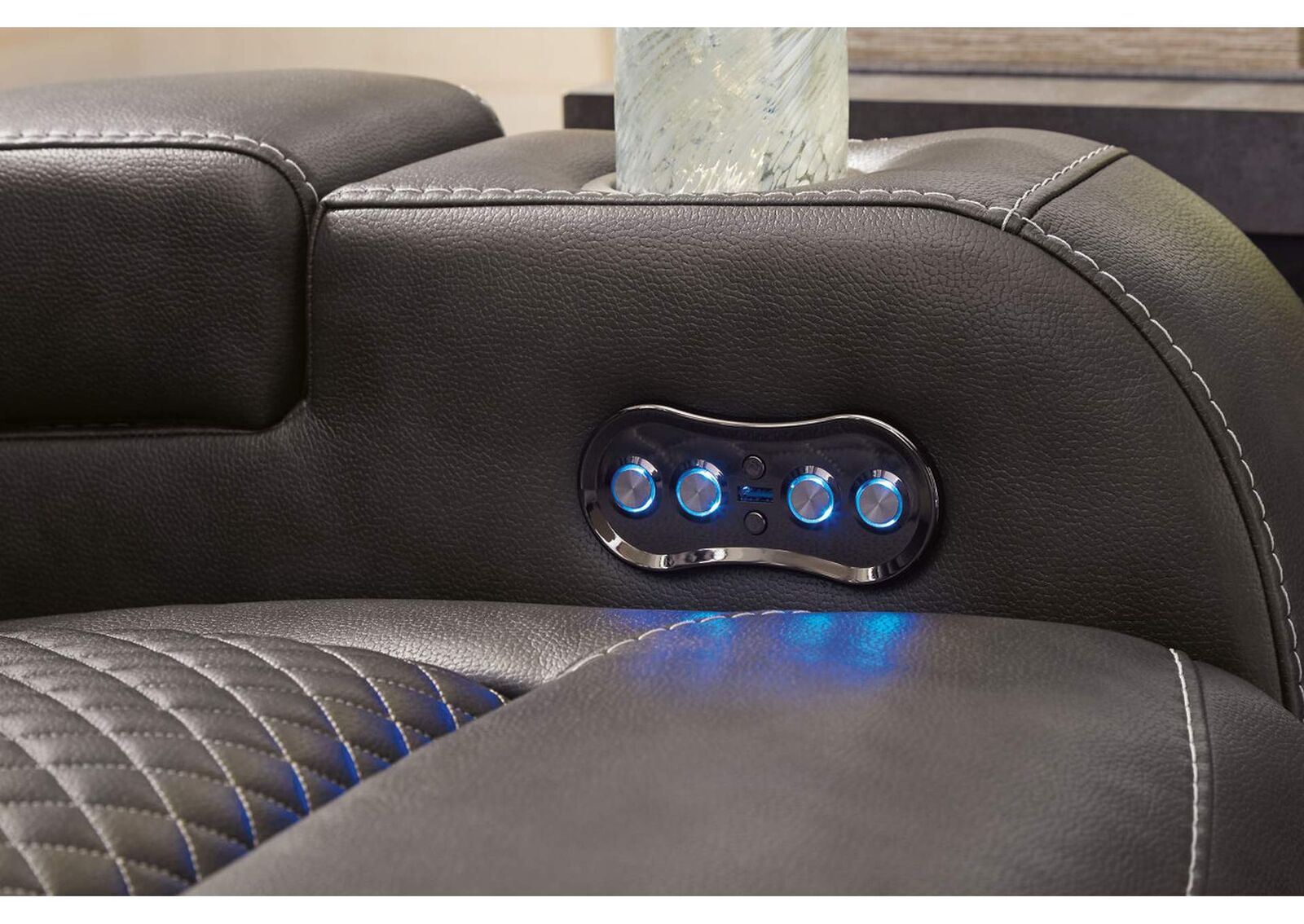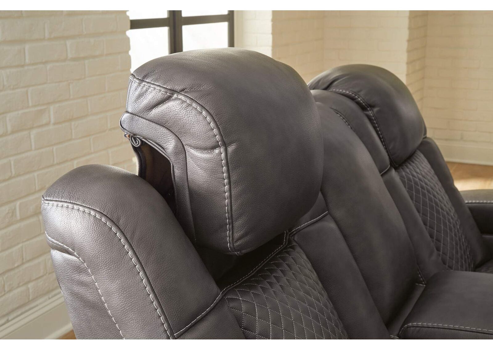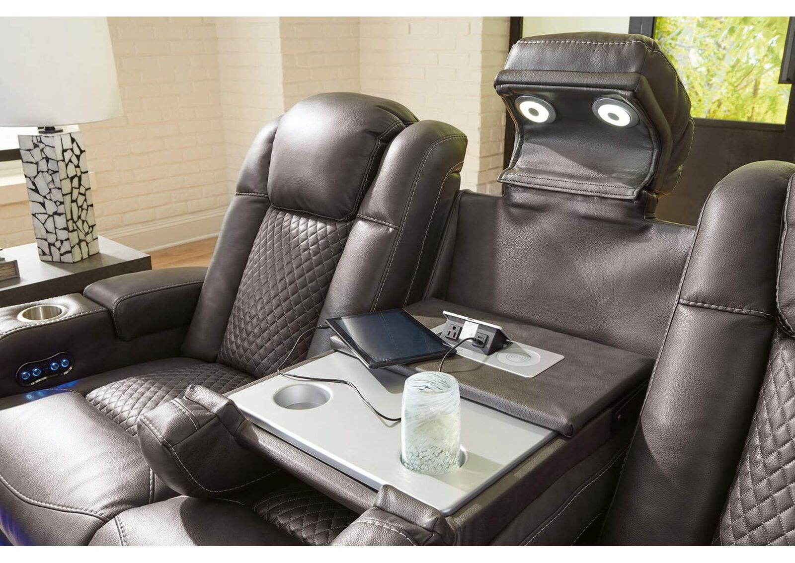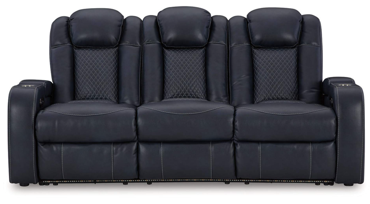 The Fyne-Dyme power reclining sofa goes beyond basic comfort. It upgrades the everyday, turning your living room into an entertainment hub. Don’t want to leave your seat? Keep essentials in reach with assorted charging options, cup holders and storage arms. You can create an even cooler vibe for family movie nights and friendly gaming matches with LED lights. And your sleek style isn’t compromised—its diamond stitching and streamlined arms recall the aesthetics of luxury automobiles.Arm height: 25 in