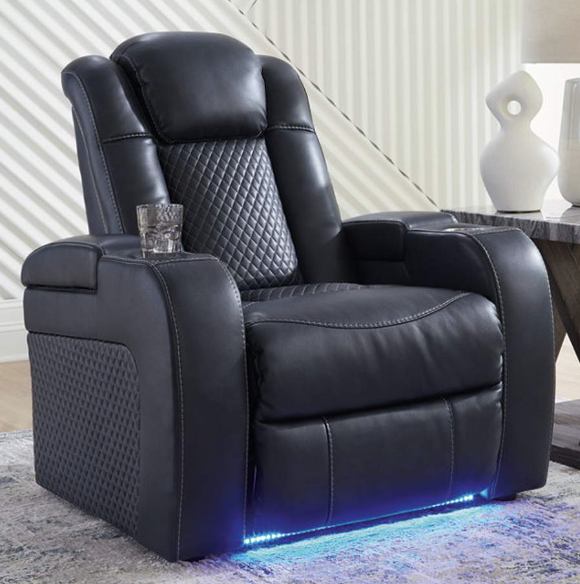 The Fyne-Dyme power recliner goes beyond basic comfort. It upgrades the everyday, turning your living room into an entertainment hub. Don’t want to leave your seat? Keep essentials in reach with storage arms and cup holders. You can create an even cooler vibe for family movie nights and friendly gaming matches with LED lights. And your sleek style isn’t compromised—its diamond stitching and streamlined arms recall the aesthetics of luxury automobiles.Arm height: 25 in