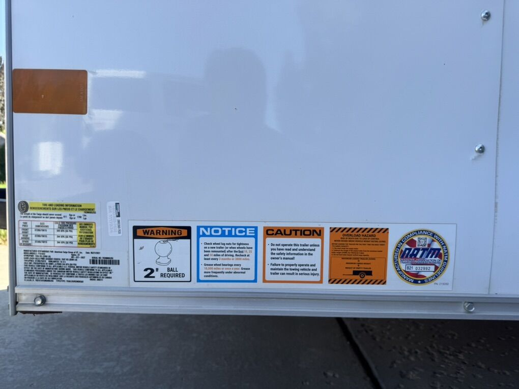 STEEL FRAME V-FRONT TAG 10′ LONG 6′ WIDE FLAT ROOF 2″ 5000# COUPLER CROSSMEMBERS 16″ ON CENTER 2″ X 3″ TUBE MAIN RAILS V-NOSE TUBE ROOF BOWS 24″ ON CENTER 1/4″ X 27″ G3 SAFETY CHAINS WITH SLIP HOOK VERTICAL POSTS 16″ ON CENTER SAND PAD 6’6″ APPROXIMATE INSIDE HEIGHT 2000# TOP WIND TONGUE JACK 76 1/2″ Z POSTS STANDARD A-FRAME TONGUE BLACK FRAME PAINT 3.5K SPRING NO BRAKE AXLE, 4″ DROP, 5B, EZ LUBE SINGLE AXLE ST205/75R15 RADIAL 5B SILVER MOD STEEL WHEEL 2000LB REAR RAMP DOOR-DELUXE TRIM W/RAMP EXTN. 3/4″ PLEXCORE DECKING 32 X 72 SIDE MFG DOOR W/GRAB HANDLE & BAR LOCK ECONOMY LINE INTERIOR WALL LINER (4) 500# SURFACE WALL MOUNTED ROPE-RING 12V DOME LIGHT LICENSE PLATE BRACKET w/SEPARATE LIGHT LED FENDER MOUNT CLEARANCE LIGHTS LED RED LENS CLEARANCE LIGHTS LED AMBER LENS CLEARANCE LIGHTS LED SLIM LINE RED LENS TAIL LIGHTS LED RED LENS REAR CLEARANCE LIGHT ID BAR 1-PIECE ALUMINUM ROOF POLAR WHITE .024 ALUMINUM EXTERIOR 6″ SCREW PATTERN FOR EXTERIOR ALUMINUM SMOOTH ALUMINUM JEEP STYLE FENDERS 16″ STARBRIGHT STONEGUARD SIDEWALL FLOW-THRU VENTS Standard Features, Specifications and Available Options subject to change without notice