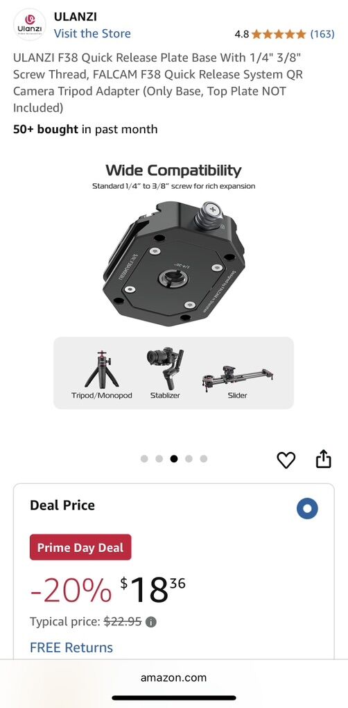 VenmoFor sale is this FALCAM x Ulanzi F38 Quick Release Plate Base with 1/4” 3/8” Screw Thread in like-new condition. This is the BASE ONLY; the top plate is not included)