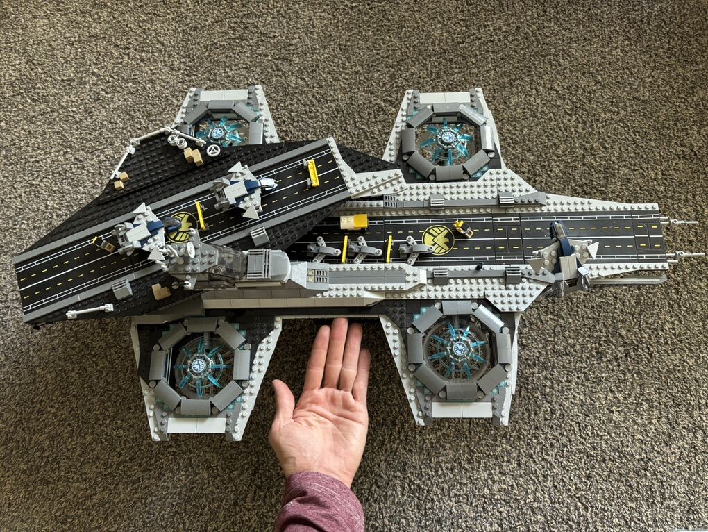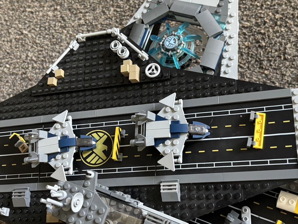 This 2,964 piece set is the premier Marvel early set. It’s basically a UCS. This set has all pieces except for the Maria Hill minifigure and the Iron Man Statuette Microfigure. All stickered pieces except the face plate are there. The instructions are brand new never used.