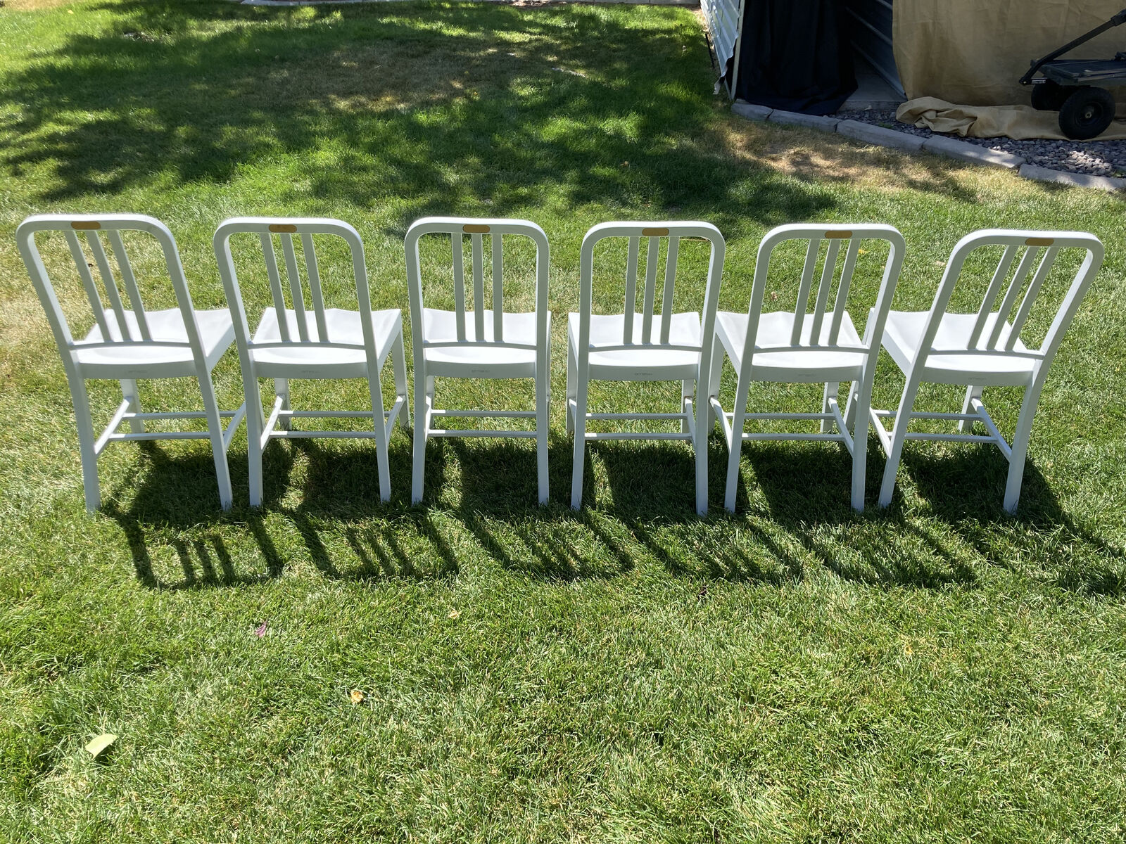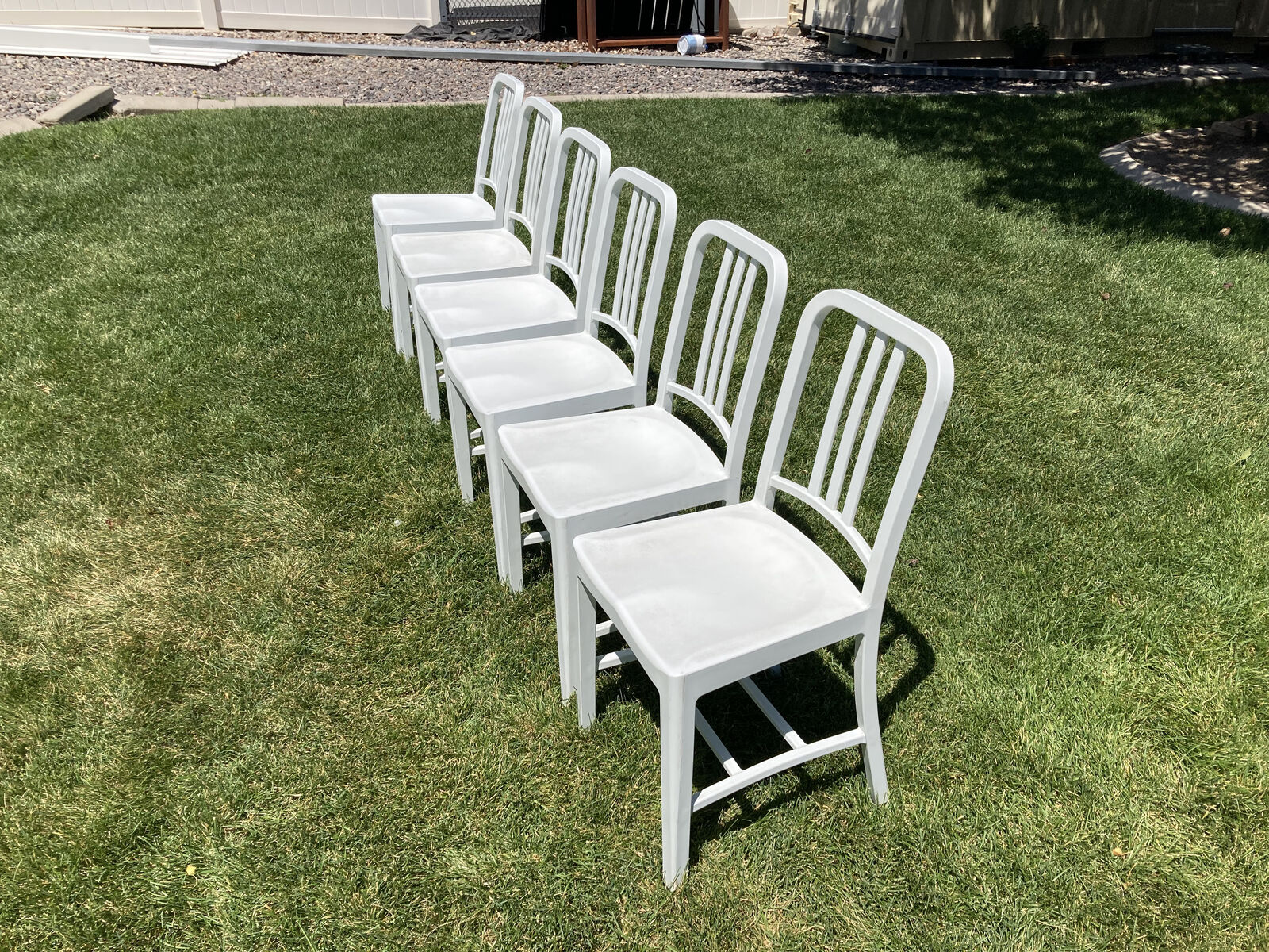 VenmoIconic Emeco 111 Navy Chairs — each crafted from 111 recycled Coca-Cola bottles and reinforced with fiberglass
