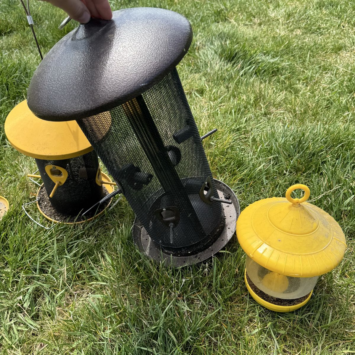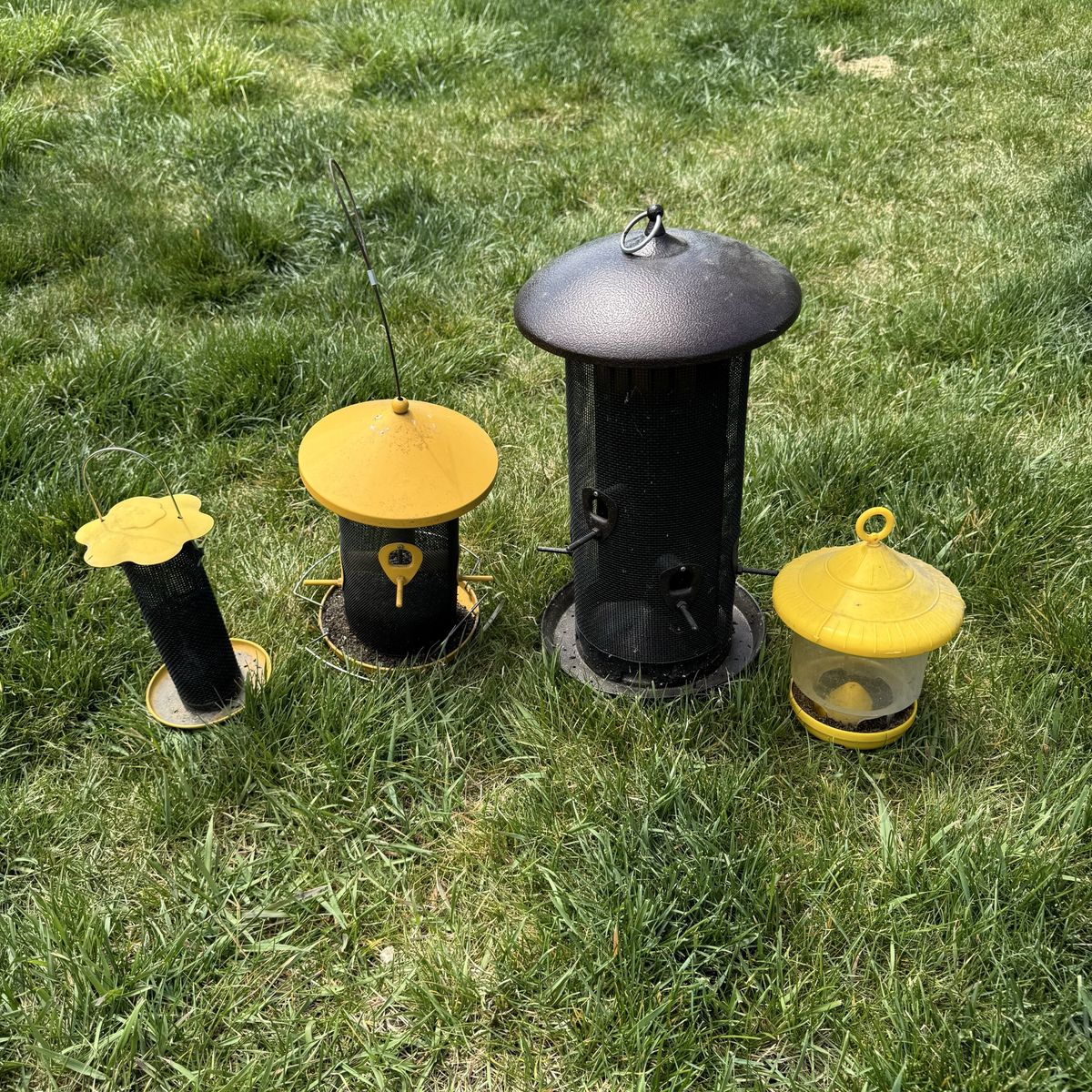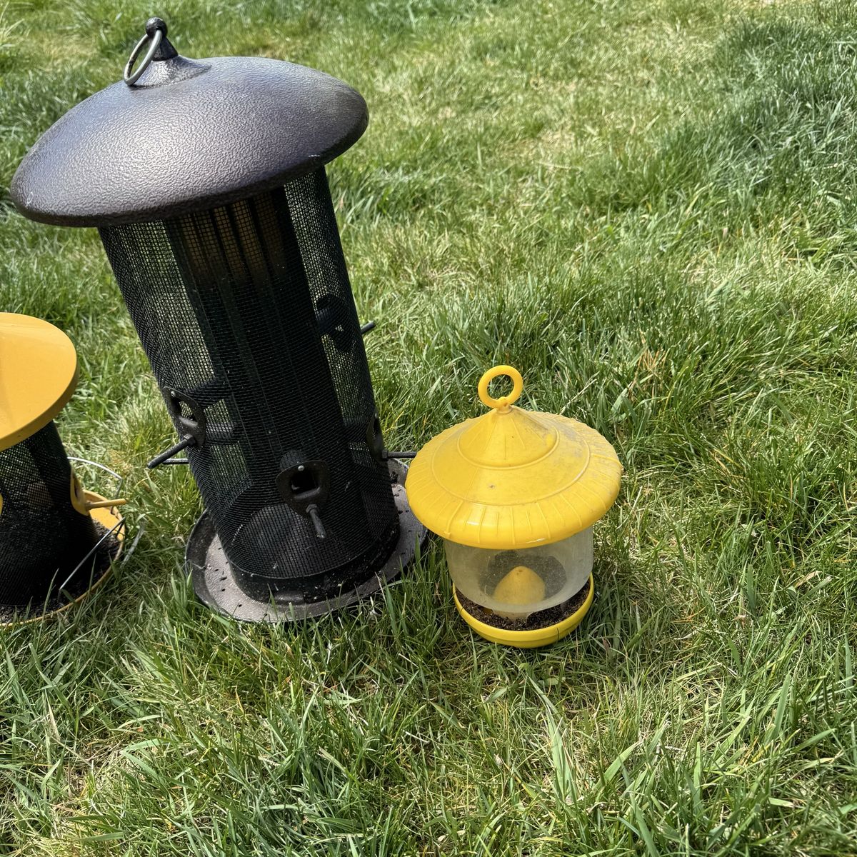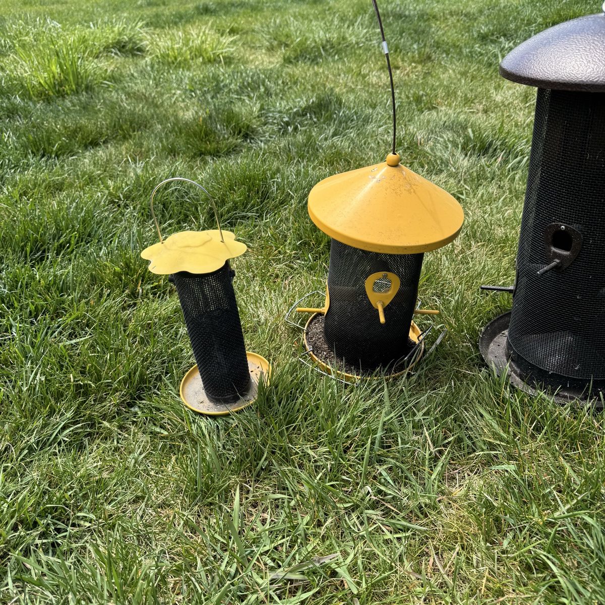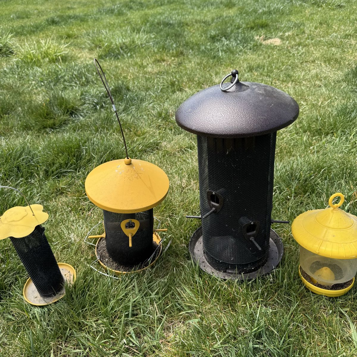 Outdoor Metal Bird Feeders Finch Blue Jay Etc Individually: Far Left $15 Left Middle $20 Right Middle $45 17” T Far Right $15