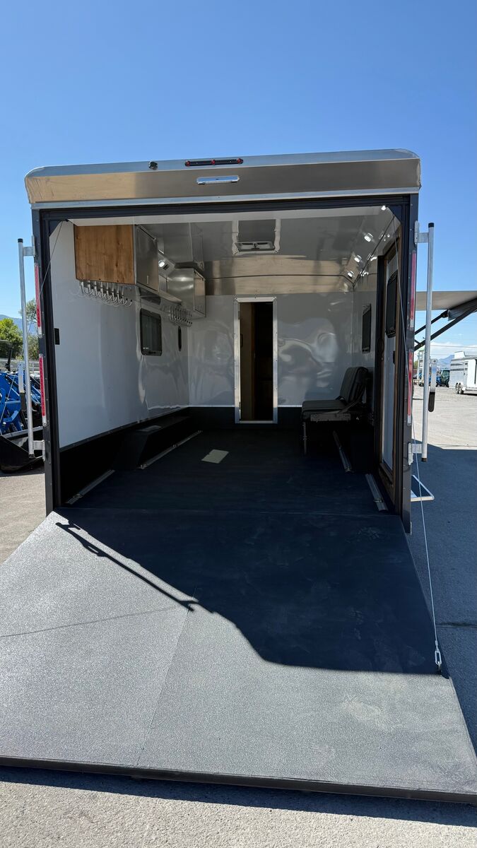 Trailer Has 14' Living Quarters Slide out with Sofa 16' Garage You asked and we delivered! Finally a well built toy hauler that has the strength and quality to last for years of memorable use! Galvanized Structural Tube Frame Galvanized structural tube frame, offers you peace of mind knowing your trailers structure will not corrode from the inside out and also give you a 18-20% stronger frame over trailers framed with raw black steel and 30% stronger than trailers framed with aluminum tubing. 0.50 Aluminum Exterior Bonded w/ 3M Technology 25% stronger than welds and mechanical fasters. 0.50 Aluminum Exterior Bonded w/ 3M Technology 25% stronger than welds and mechanical fasters. Vortex Rubber Vortex rubber spray coating is sprayed to all the exposed galvanized sheeting and tubing. This gives your trailer a smooth, sharp finished look and adds protection and strength to your trailer. Most importantly is makes for the strongest, quietest trailer on the market! Quality Built LQ interior w/ Hardwood cabinets