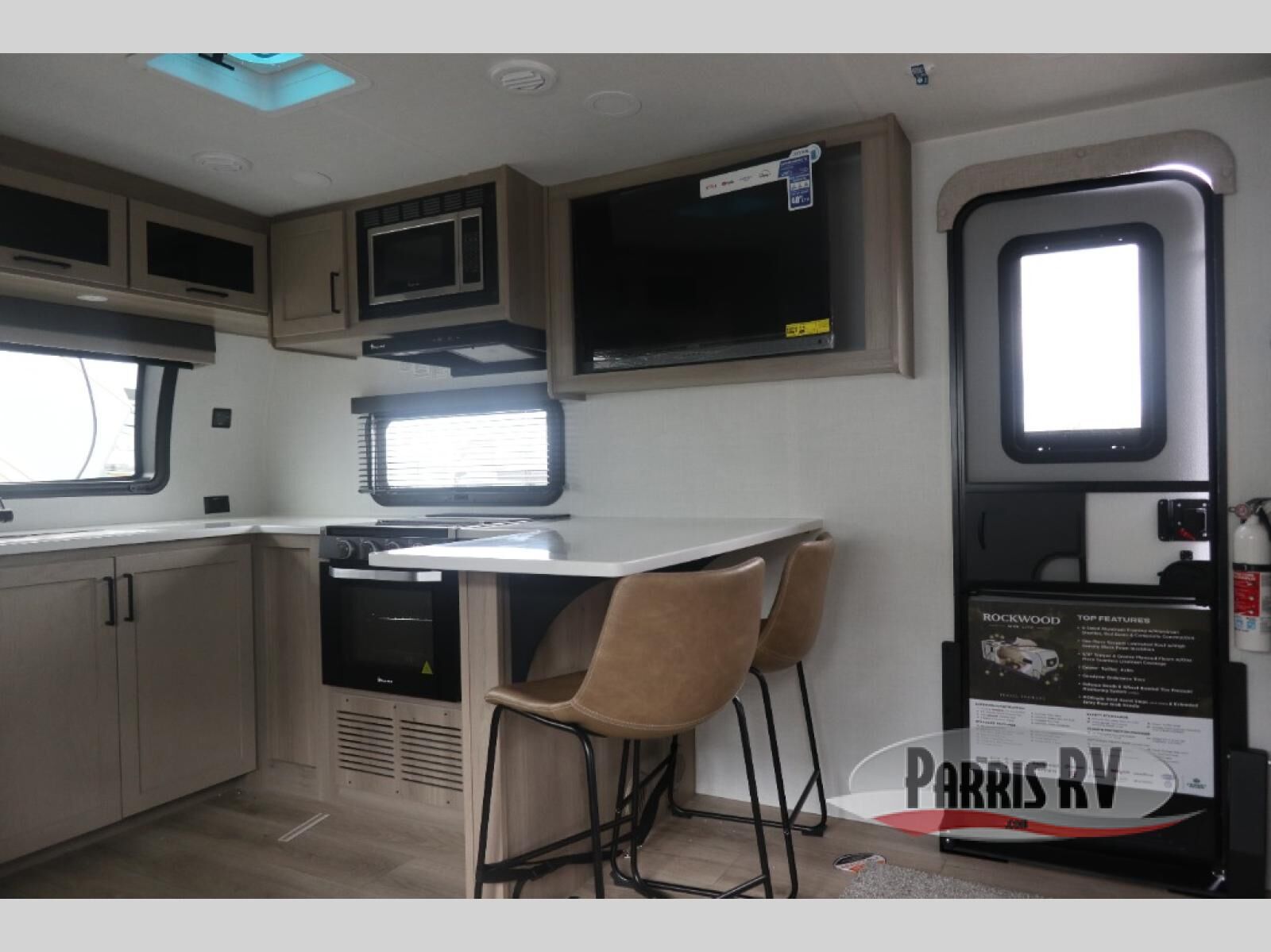 Each Rockwood Mini Lite travel trailer by Forest River is constructed with a fully laminated one-piece walkable roof, sleek frameless windows, and a six-sided full aluminum frame for strength and durability. The 12V thermostatically controlled heated tanks, plus radiant foil in the underbelly will allow you to camp well into the colder months, and the 200W roof solar panel will be perfect for a little off-gridding. Each model includes solid surface kitchen countertops, hidden hinge cabinet doors, roller shades, plus many more interior features. Having an AIR 360+ omnidirectional antenna with WiFi prep on board gives you the option to get some work done if it's needed, and the power tongue jack provides hassle-free set up, so you can enjoy more time relaxing!