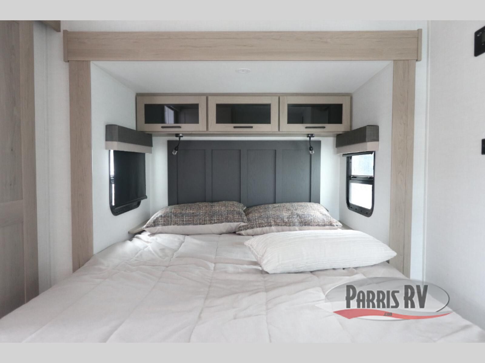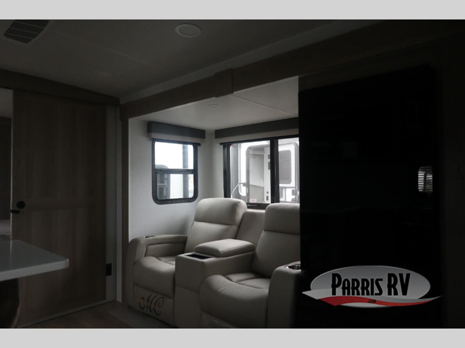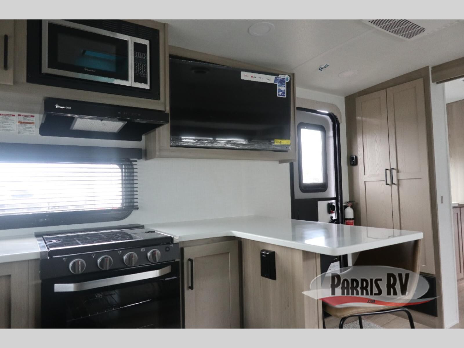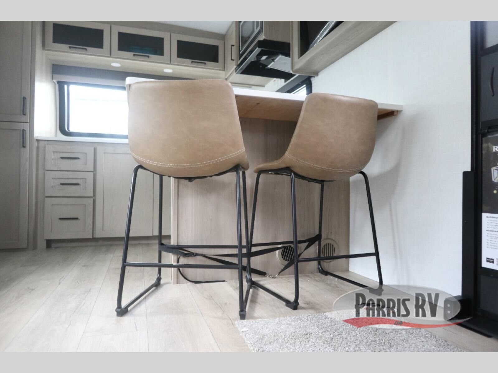 This travel trailer is the best option for you and your partner! The lavish full rear bathroom features a spacious layout and a convenient linen closet, perfect for relaxation and refreshment. The elegant bedroom boasts a plush queen bed, ample wardrobe space, and stylish dresser, creating a serene retreat. The spacious living room and kitchen combined area is the heart of the trailer, featuring plush theater seating for cozy movie nights, a generous closet for storing essentials, and a 12V Smart TV for entertainment on the go. Plus, the expansive countertop with chairs provides a perfect spot for gourmet meals or socializing, while the premium three-burner cooktop, well-stocked kitchen pantry, and high-performance microwave make meal prep and cooking a true delight.