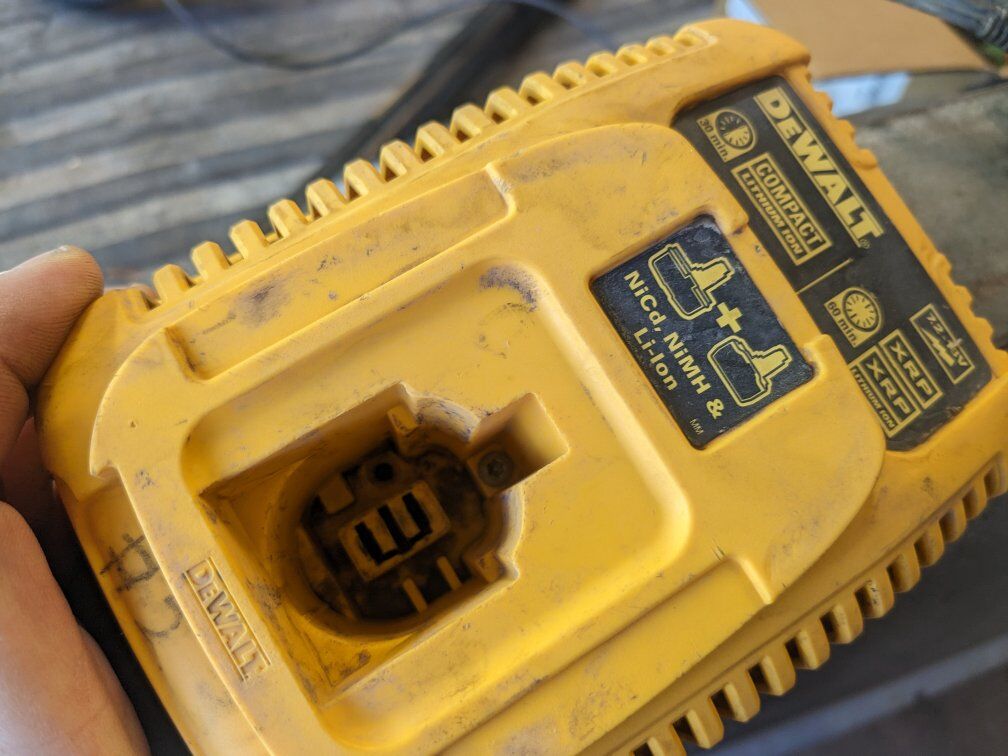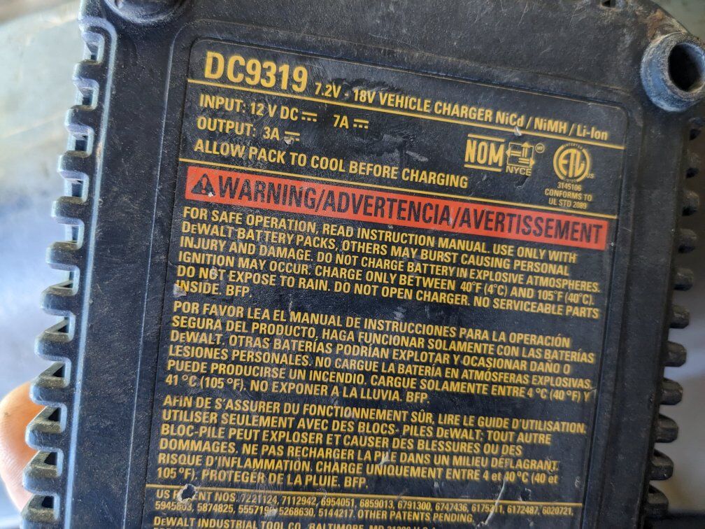 This is a DeWalt battery charger that you plug into your cigarette lighter. It handles all the DeWalt batteries that have the post sticking out of the top.