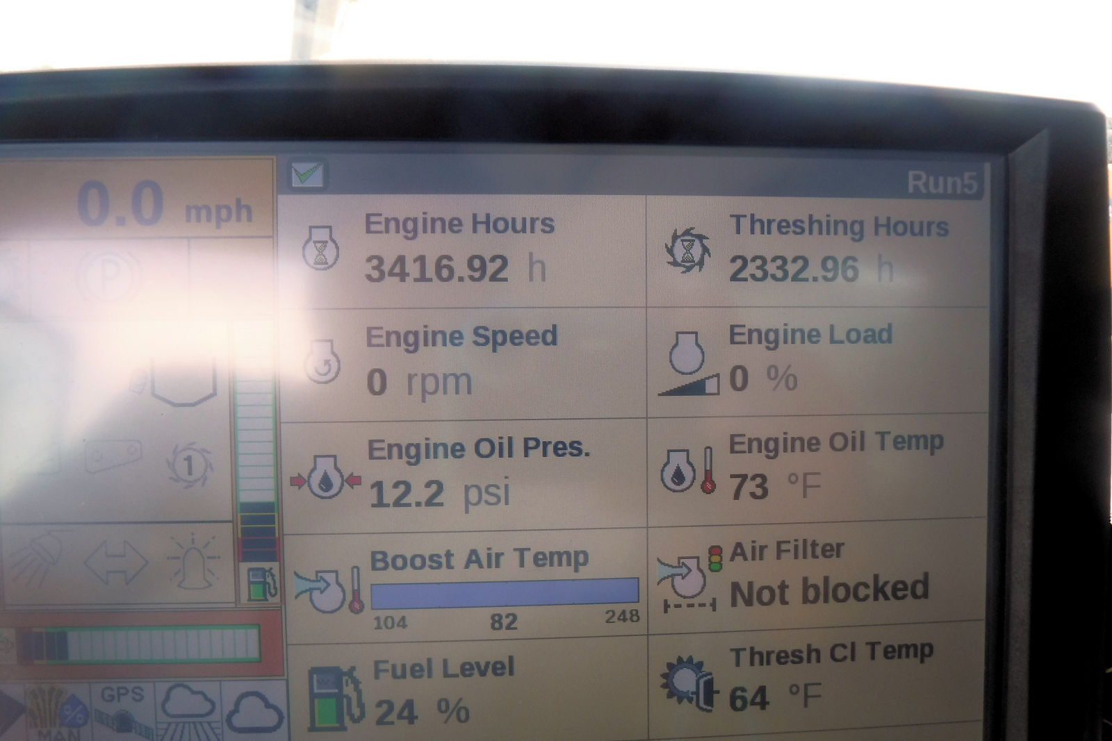 Engine hrs. 3416.92, Threshing hrs. 2332.96