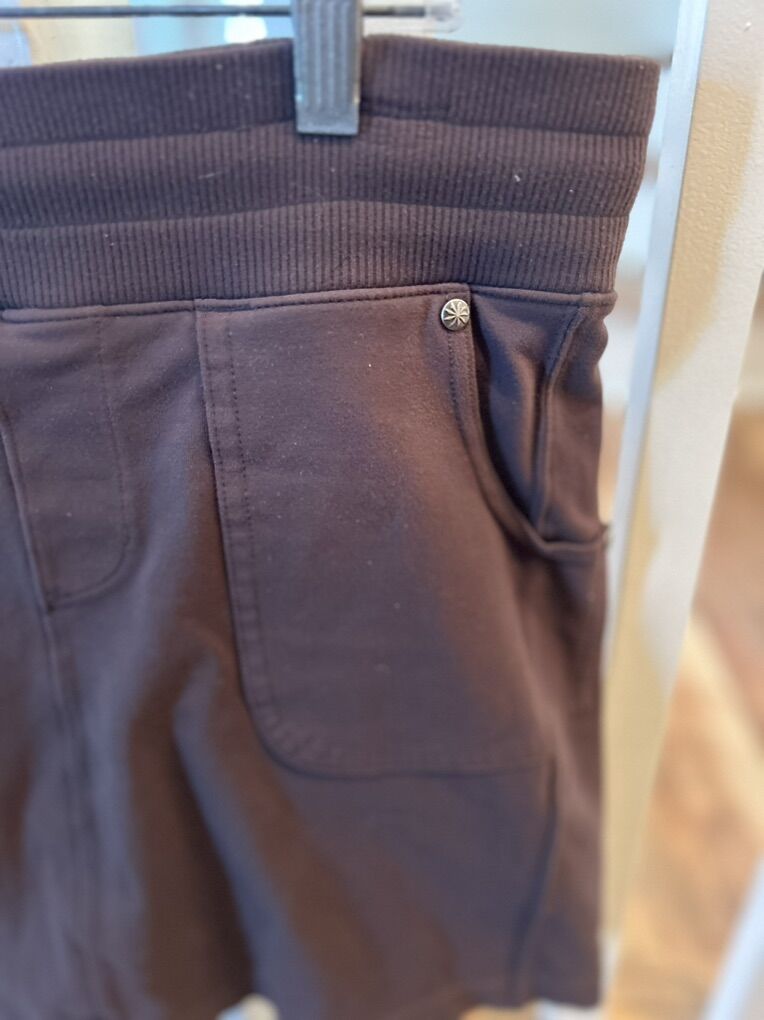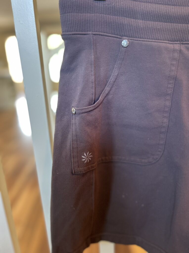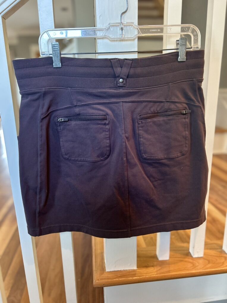 ZelleThe Athleta Golf Tennis Skirt in Brown is a stylish and functional piece of activewear designed for women who enjoy outdoor activities like tennis, golf, or walking. Made from a blend of polyester, spandex, and nylon, this skirt features a comfortable and stretchy fabric that allows for ease of movement. With a pull-on closure and zip pocket for convenience, this skirt is perfect for the warmer seasons of spring and summer. The solid brown color and athletic style make it a versatile addition to any outdoor wardrobe, suitable for various active pursuits.