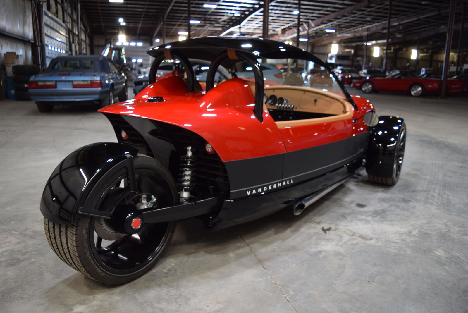 Turn heads everywhere you go with this stunning 2024 Vanderhall Carmel GT, finished in a striking Red exterior paired with an elegant Tan leather interior.