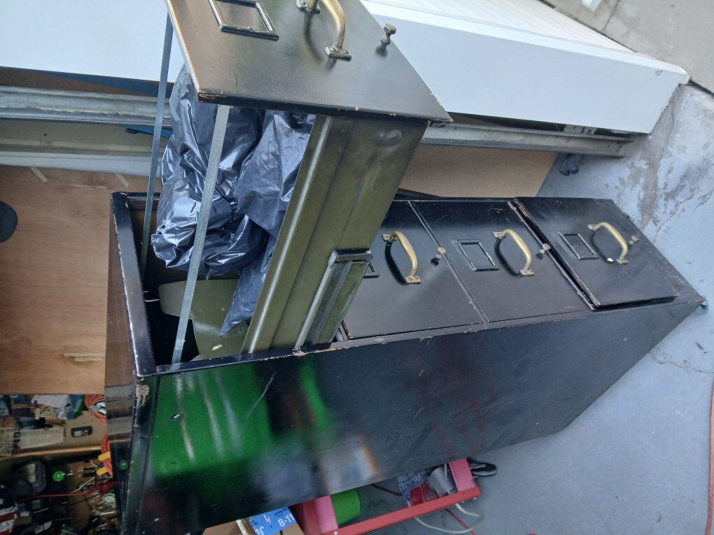 Vintage filing cabinet it's in fair condition all drawers open and close, I have added casters to it to make it easier to move around, I use these to store tools and hardware in, 26 deep, 15 wide, 51 high,
