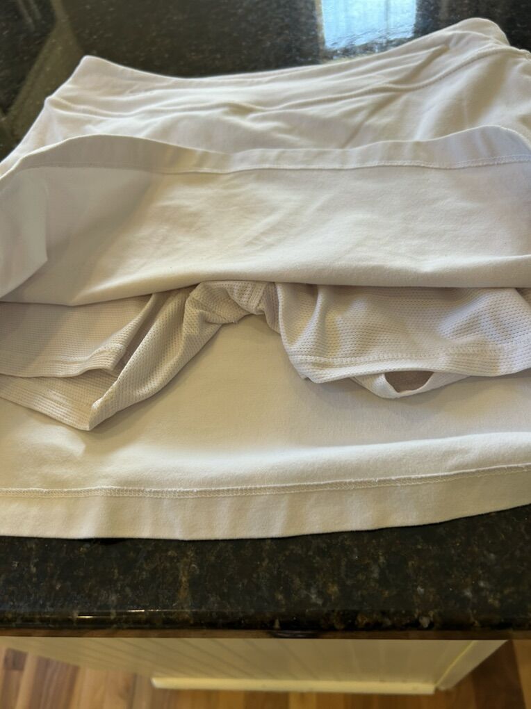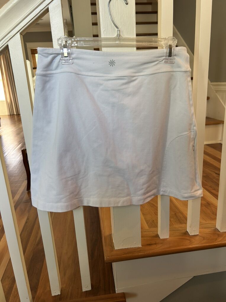 ZelleThe Athleta Golf Tennis Skirt in White is a stylish and functional piece of activewear designed for women who enjoy outdoor activities like tennis, golf, or walking. Made from a blend of polyester, spandex, and nylon, this skirt features a comfortable and stretchy fabric that allows for ease of movement. With a pull-on closure and zip pocket for convenience, this skirt is perfect for the warmer seasons of spring and summer. The solid brown color and athletic style make it a versatile addition to any outdoor wardrobe, suitable for various active pursuits.