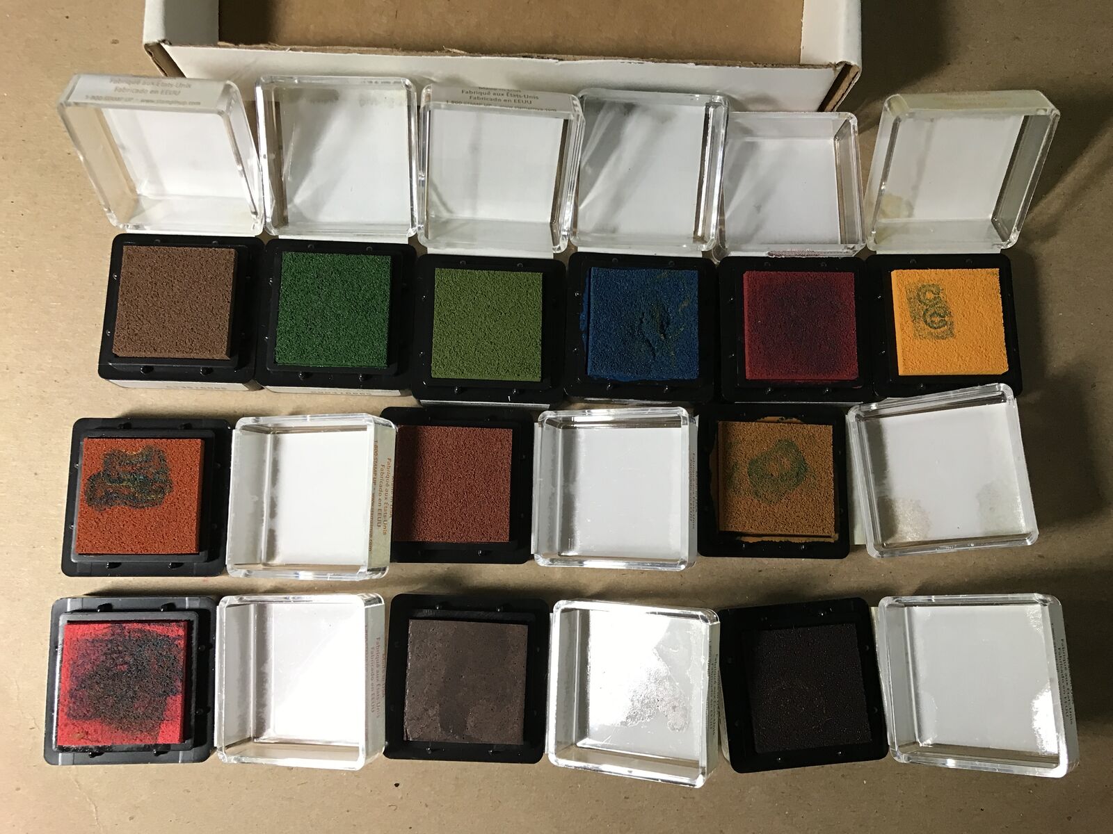 Stampin Up Earth Elements Pigment Ink Stampin Spots Retired, Used. Some of the ink pads have a darker color of ink from a stamp that has been stamped in a darker ink. $10.00 for each set.